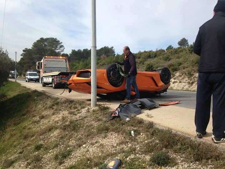 There is no information on how the four-wheel drive, V10-powered machine ended up on its roof, except that it happened somewhere in France, but the photos do reveal extensive damage to the body work, on both ends. The left rear suspension is missing, along with the 19-inch wheel, wrapped in Pirelli P Zero rubber, but the cockpit seems to have stayed in one piece, minus its top, which sits lower than usual, on the driver’s side.