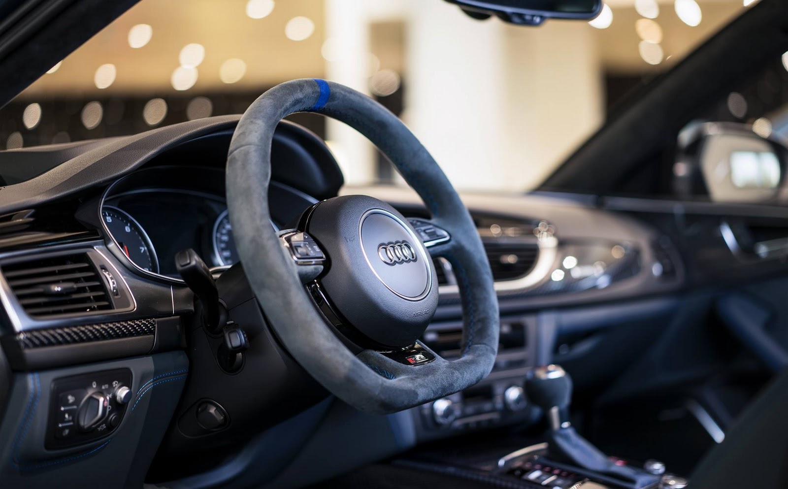 This particular build features a Polar Blue Metallic exterior, Audi Sport titanium exhaust tips and 5-V-spoke alloys. It’s great but you may want to wait until you step inside and experience all the Alcantara, carbon and Valcona leather surfaces.
