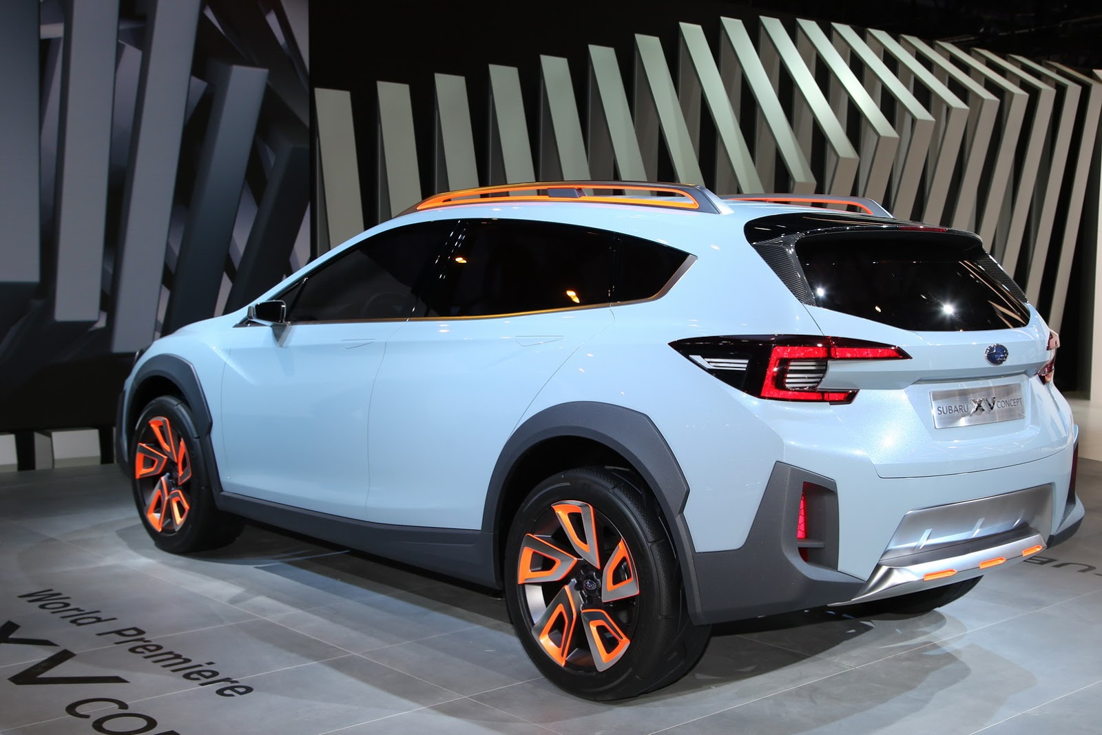 The XV Concept dresses the hatchback body of the regular Impreza hatch with more rugged and muscular looking elements that include matt black body cladding, new front and rear bumpers with aluminum skid plates, roof rails, and a modified grille.