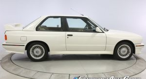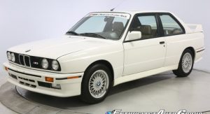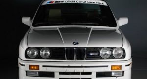 According to the sellers over at Enthusiast Auto Group, the Alpine White 1991 BMW M3 was originally used as a BMW Promotional Pace Car at Lime Rock Park, but it was sold to David Hobbs with less than 200 miles on the clock to “fund repaving Lime Rock’s race circuit”.