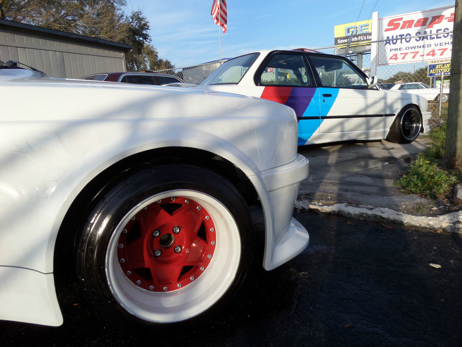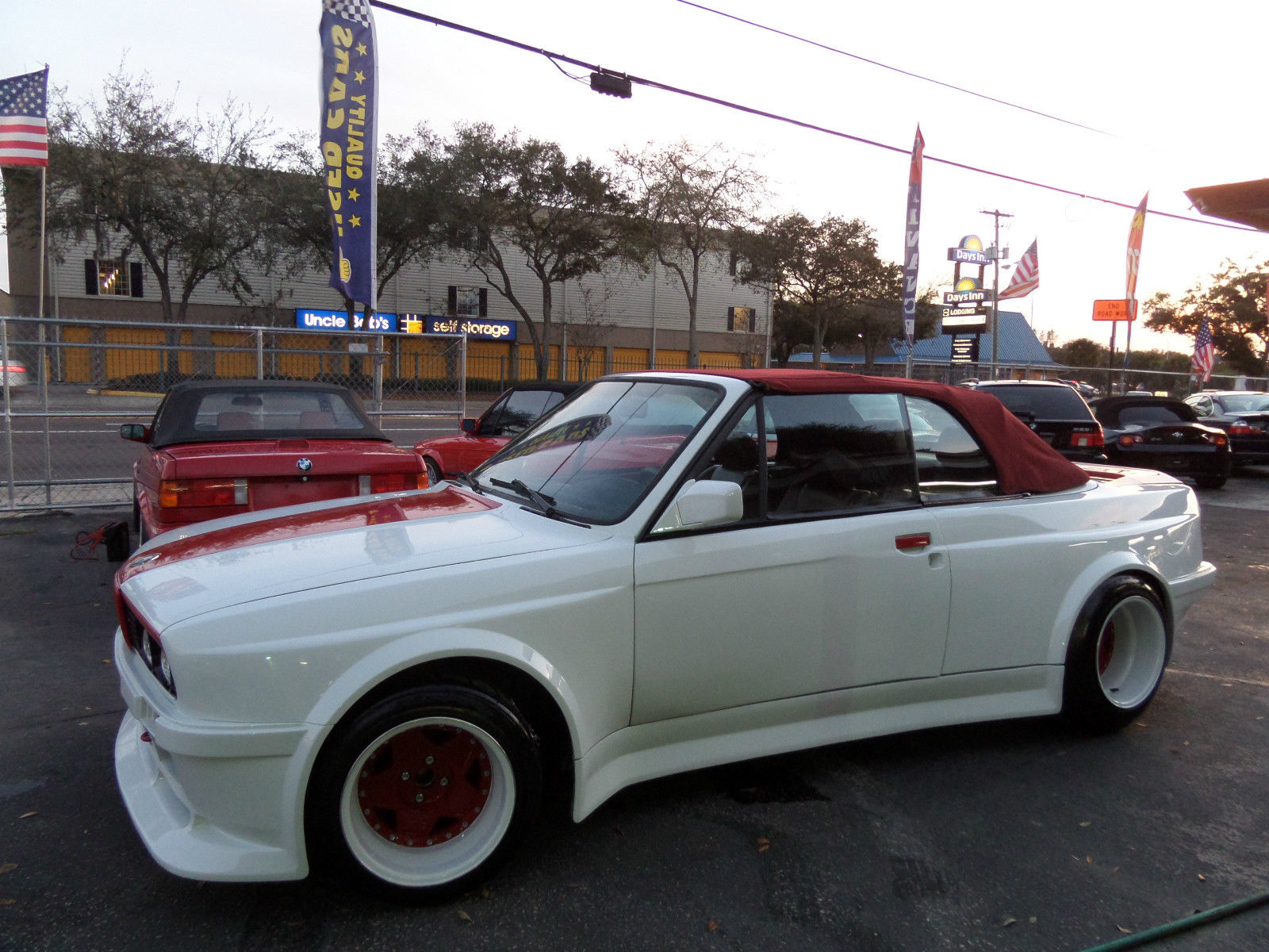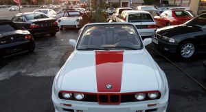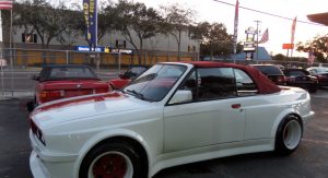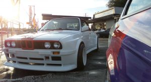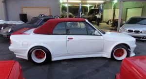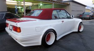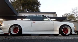 In fact, the white 1987 BMW 325i Convertible that’s up for sale on eBay right now originally came with those faux side vents, but the current owner says they were “deleted to give more of a BMW M3 Style look”. The seller doesn’t say which widebody kit was used here, however, the styling of the fenders and bumpers point to one of Folger’s offerings.