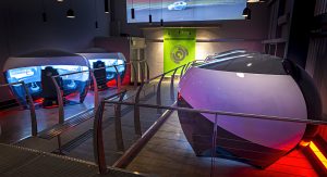 Called the ‘Motion Simulation Room’, this facility looks to separate itself of any other existing simulation centers, mostly thanks to its six professional full motion TL3 simulators, each capable of generating up to 2 G of acceleration, while offering realistic movement across 3 axis of heave, pitch and roll. This is where visitors will also experience the world’s first 200 degree wrap around spherical screen, able to deliver amazing visuals from a 6 million pixel image.