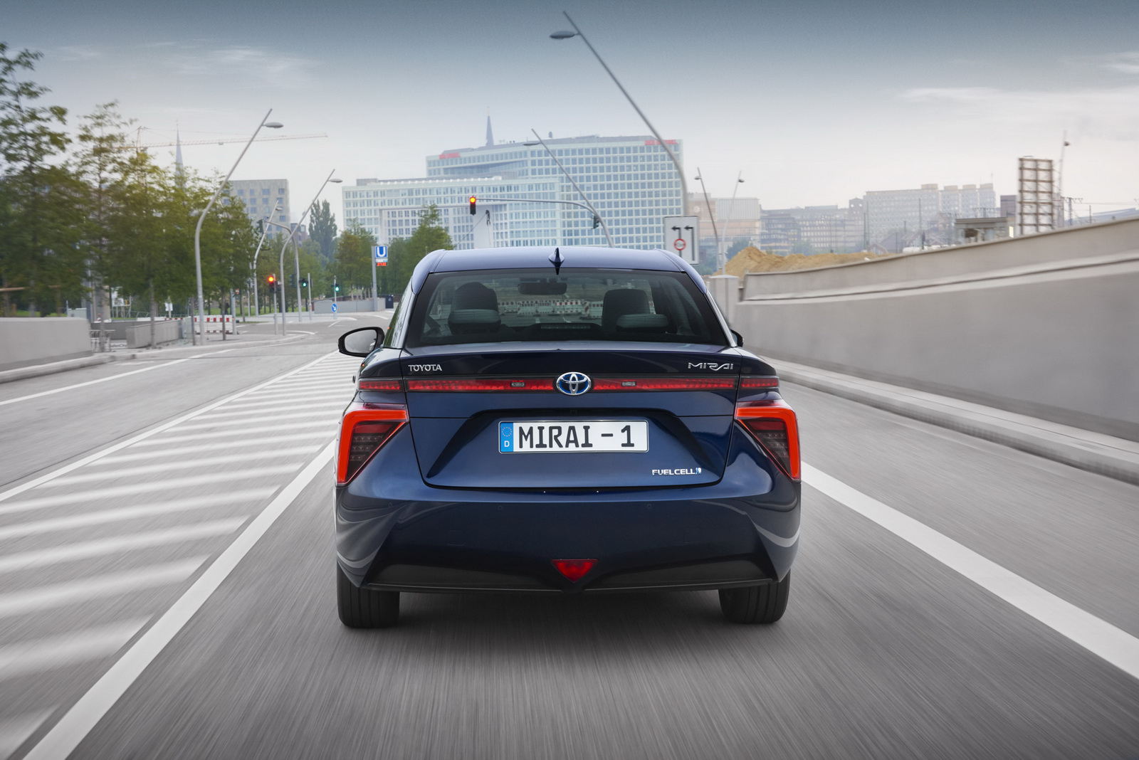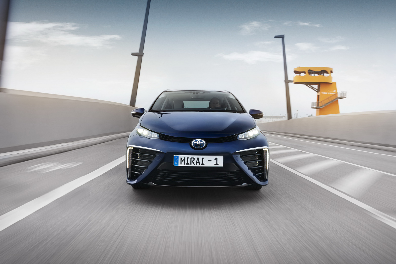 The Toyota Mirai uses hydrogen to generate electricity within a fuel cell stack and it emits just water. It has a total driving range of around 500 km (310 miles) and refueling its tank with hydrogen takes approximately 3 minutes.