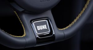 As for the Dune’s bespoke look, it comes courtesy of a custom multifunction leather steering wheel with a decorative insert and contrast ‘Tumeric’ stitching, leather-clad handbrake with contrast stitching and carpet mats front and rear with ‘Tumeric’ contrast stitching.