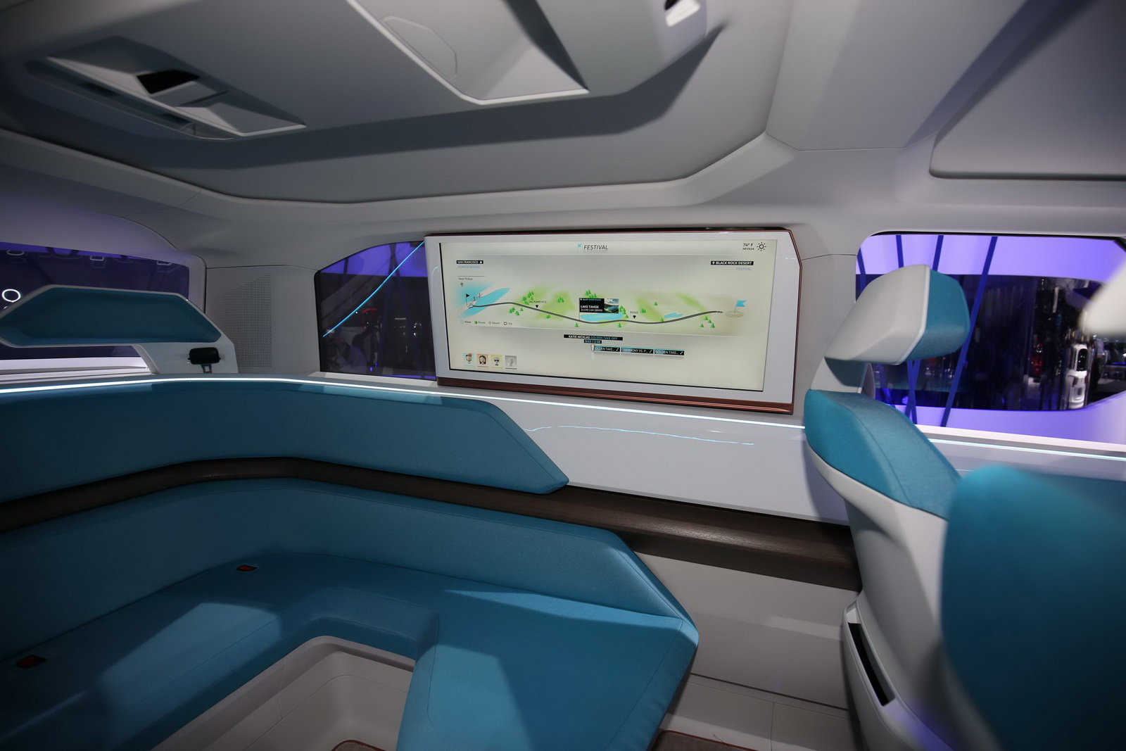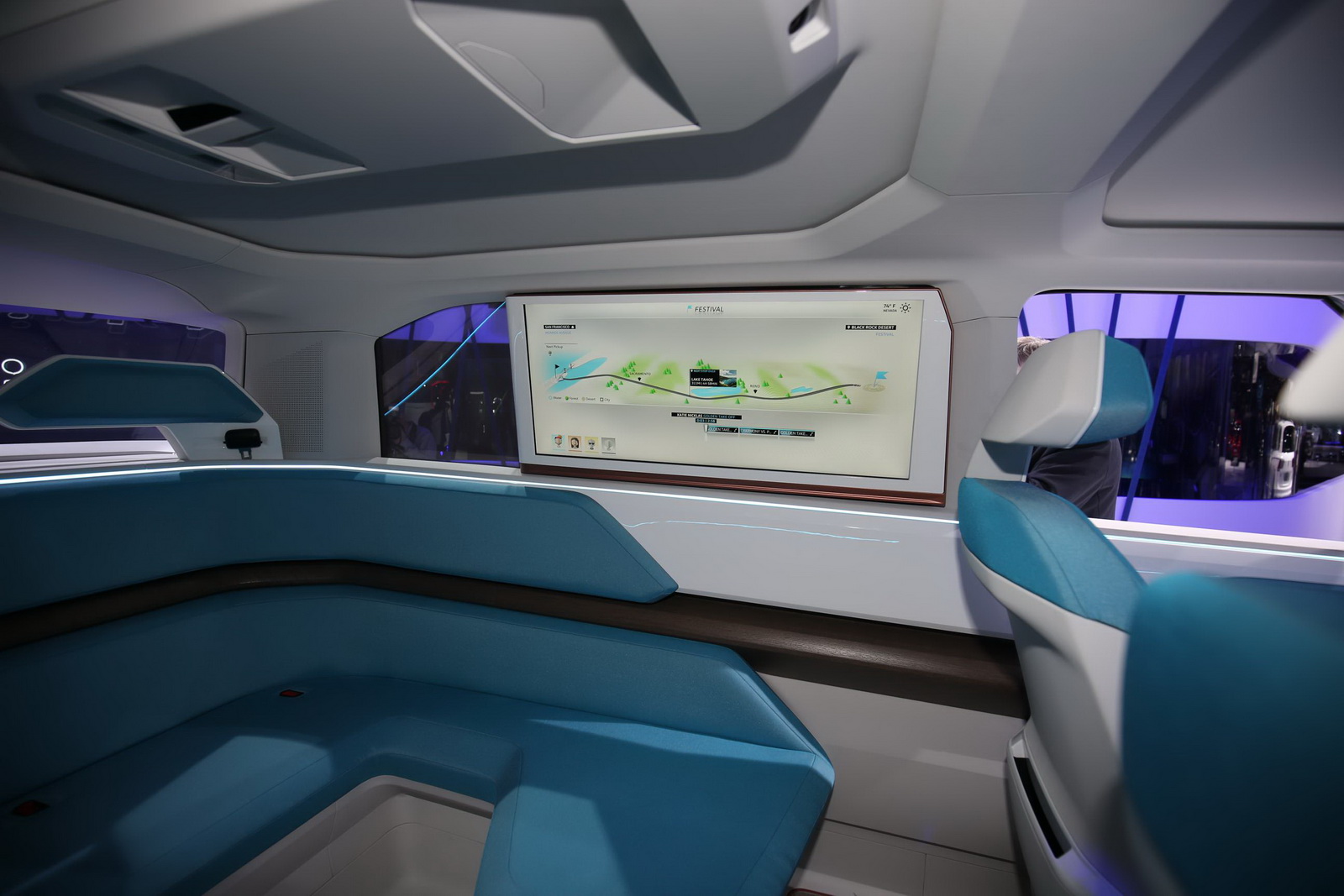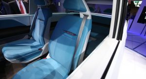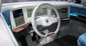 The interior stays true to Volkswagen’s commitment for the future of automobiles: drastically reduced knobs and buttons (the T-Cross Breeze concept, premiered at Geneva, follows the same philosophy). Even the multifunctional steering wheel features pressure or swipe activated functions instead of regular inputs.