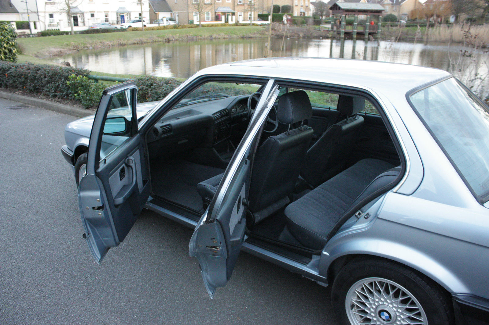 Painted in Glacier Blue, the bodywork is claimed to be 100 per cent rust free and does look straight as an arrow with all the trim present and overall in a very, very nice condition. The BBS cross-spoke alloys were always a perfect match for the iconic E30 shape, and these ones are recently refurbished according to the seller to reflect the rest of the car’s condition. The cabin also looks immaculate, with the cloth on the seats showing no signs of wear and the driver-focused dashboard still retaining its factory stereo and the analogue clock. We spotted some minor wear at the driver seat’s back but that’s about it. There is also an unused tool kit, warning triangle and a first aid kit in their original housing.
