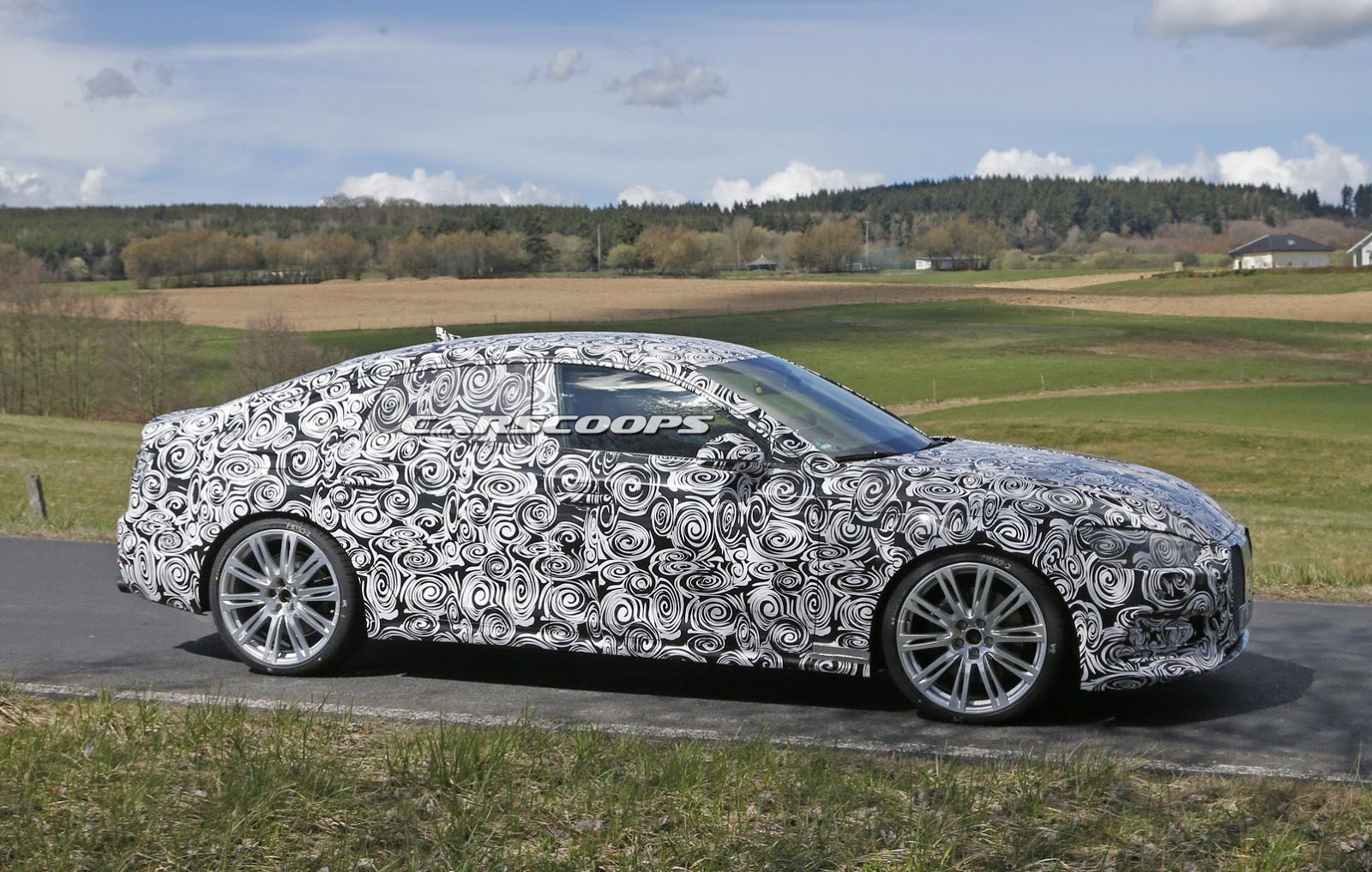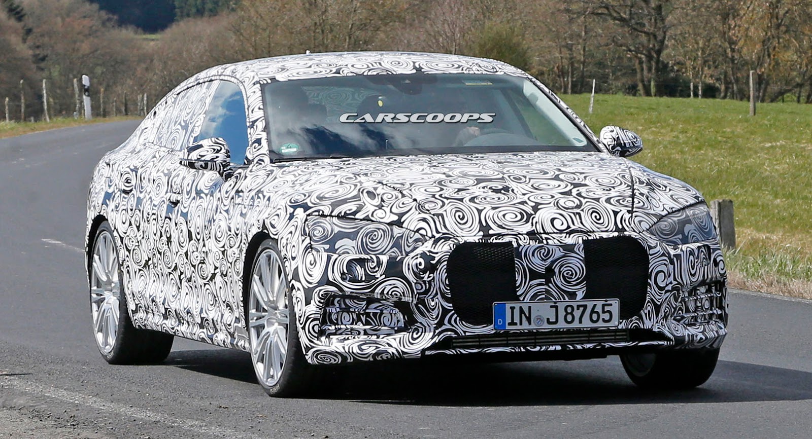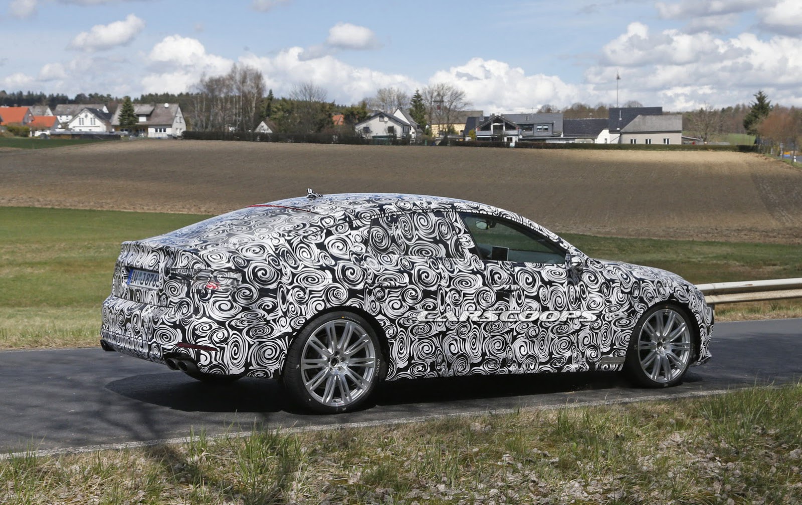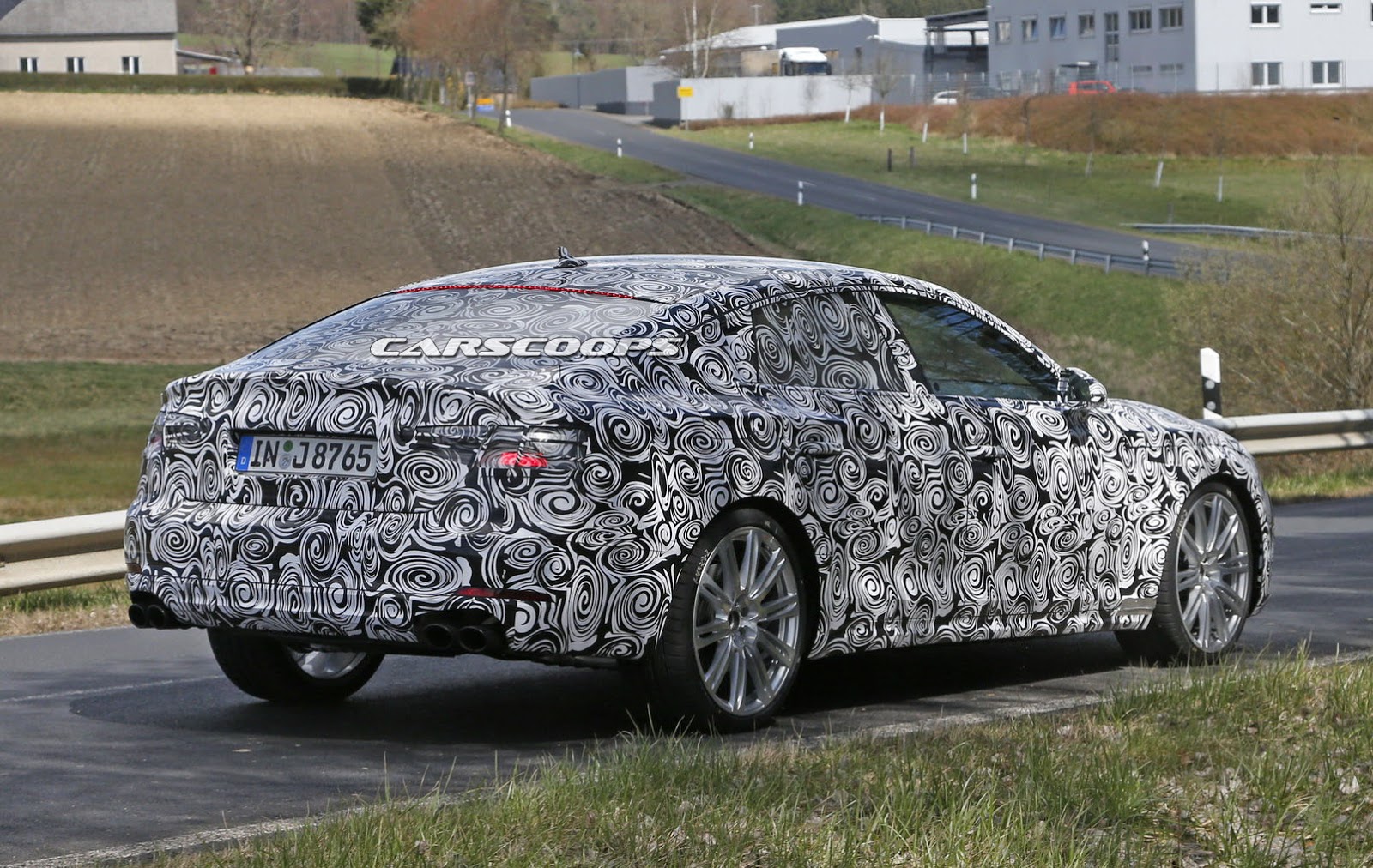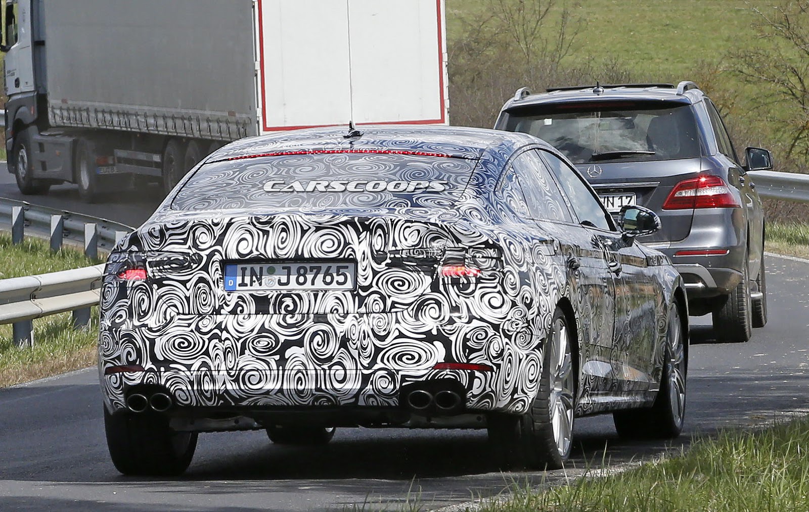 After seeing Audi’s 5-door A5 fully camouflaged in Sweden at the beginning of March, the more potent S5 Sportback has now shown up at the warmer pastures in and around the Nurburgring.