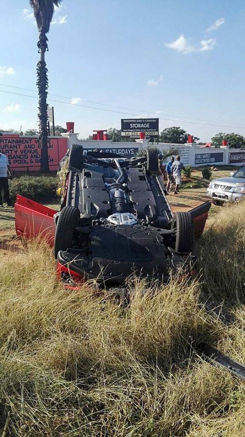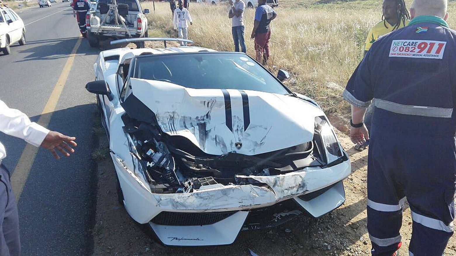 While the exact details surrounding the accident are still under investigation, from pictures taken at the scene and posted on Facebook by Netcare911, it looks like the Lamborghini rammed the Mazda on its side sending it toppling over on its head.