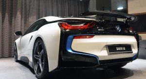 There’s also a set of 21″ custom alloys with a 5 twin-spoke design and, even though they’re not as futuristic-looking as “regular” i8 alloys, they do give BMW’s hybrid sports coupe a more menacing stance.