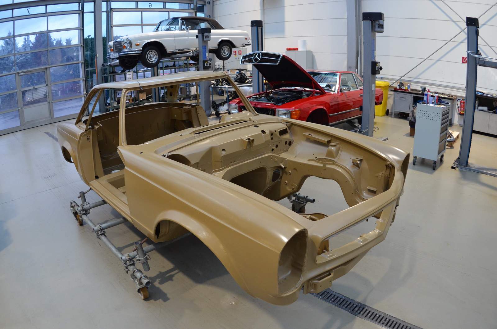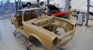 Experienced master bodywork specialists remove the entire paint from the body shell, in order to apply a perfect paint-job in the original color – but not before making sure the vehicles receive perfect corrosion protection using cutting-edge technology to protect the paint.