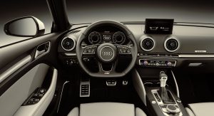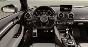 Audi’s glorious Virtual Cockpit is now an option, too. As in the TT, Q7 and A4, it looks like it will impress A3 drivers with sharp resolution over the 12.3-inch screen. A 7-inch screen still rises electrically from the dashboard for the MMI interface, but it’s unclear if it finally incorporates a USB port and Apple CarPlay and Android Auto as the 2017 A4 now does.