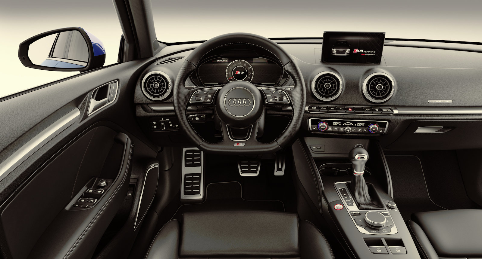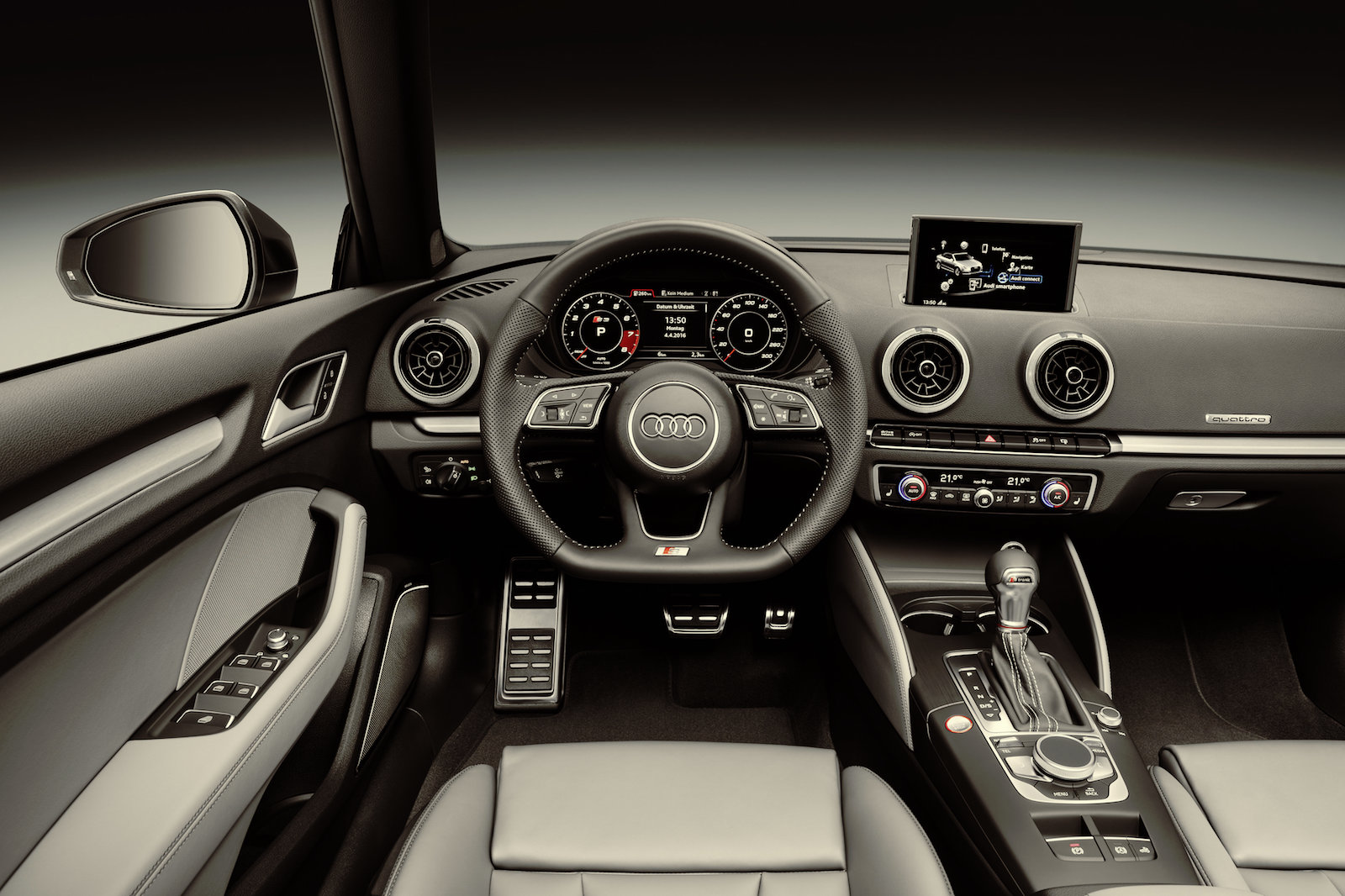 Audi’s glorious Virtual Cockpit is now an option, too. As in the TT, Q7 and A4, it looks like it will impress A3 drivers with sharp resolution over the 12.3-inch screen. A 7-inch screen still rises electrically from the dashboard for the MMI interface, but it’s unclear if it finally incorporates a USB port and Apple CarPlay and Android Auto as the 2017 A4 now does.