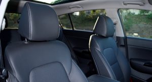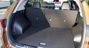 Aside from the engine, however, the Sportage isn’t that sporty. The interior is set up for comfort, with comfortable rather than aggressive leather seats. Even with the 19-inch wheels, the ride is fairly soft. And the steering is low effort (and devoid of feel). Yet it’s all relatively quiet, too, meaning the Sportage SX Turbo should be good when loaded with four adults and their luggage and trying to climb a grade. Despite the adventurous styling and enormous glass roof on this example, there’s space inside comparable to popular crossovers like the Mazda CX-5.