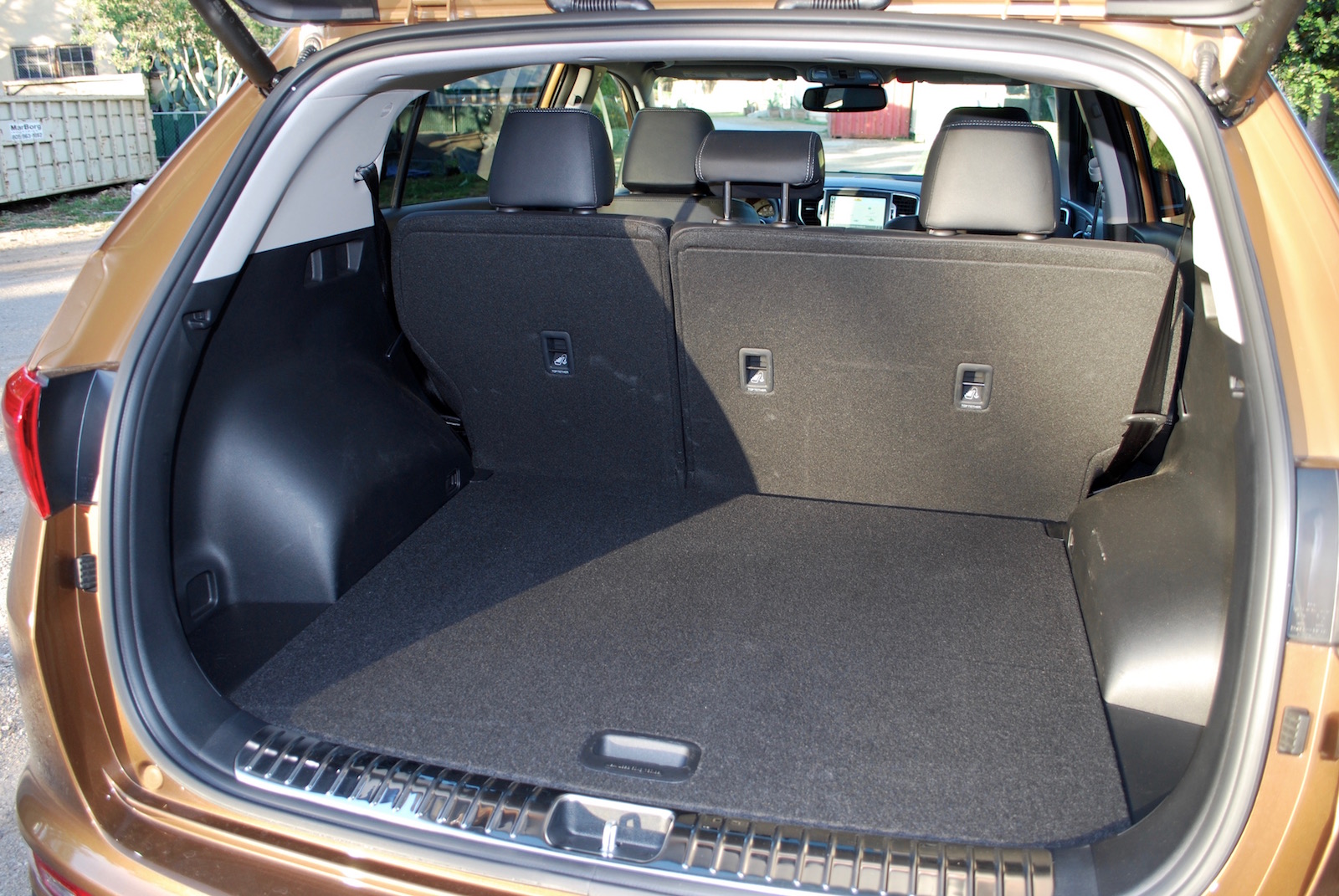 Also divisive is the color, which looks gold, but is actually called Burnished Copper. I haven’t made my mind up about it yet, but it does go some way to mitigate the more garish detailing on the car, like the quad fog lights. As I’ve already determined a Sportage is a way to stand out among the CR-V/RAV4/Escape crowd, though, Burnished Copper isn’t a bad way to go.