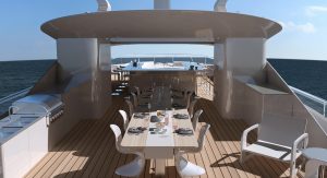 As you’d expect from a superyacht, the construction offers “ultimate luxury living” areas on each deck, and every room is designed to enjoy optimized ocean views. It even has onboard amenities, including a beach club, spa, several bars, sunbathing areas, water toys, and ocean-facing Jacuzzis. 12 guests in six cabins can be accommodated, with another 11 crew members and personnel in the comfortable staff area.