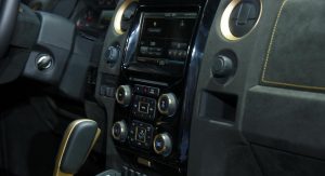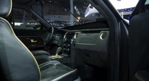 Take your eyes off that angular body that makes Lexus’ LF-NX Concept seem rounded and head inside, and you’ll find the familiar interior of a 2014 Ford F-150, although heavily customized in a Chinese fashion with gold accents making their appearance felt just about everywhere. Wherever you look, you’ll see surfaces finished in black leather or alcantara with IAT also splashing the interior with as much wood as it could get its hands on.