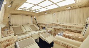 Thanks to its spacious cabin, the V-Class can act as the perfect base for a custom-build luxurious lounge bureau, especially the extra-long L3 variant named named “Black Crystal”, which is described as a business jet on wheels.
