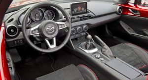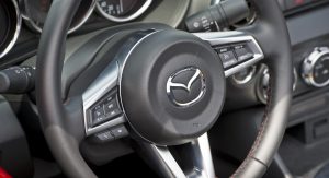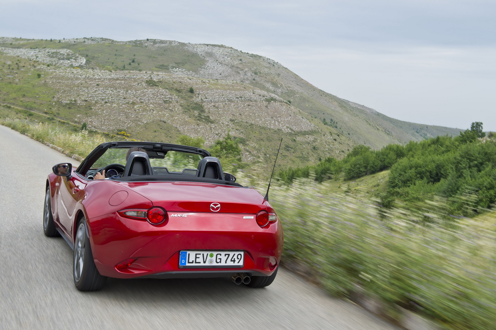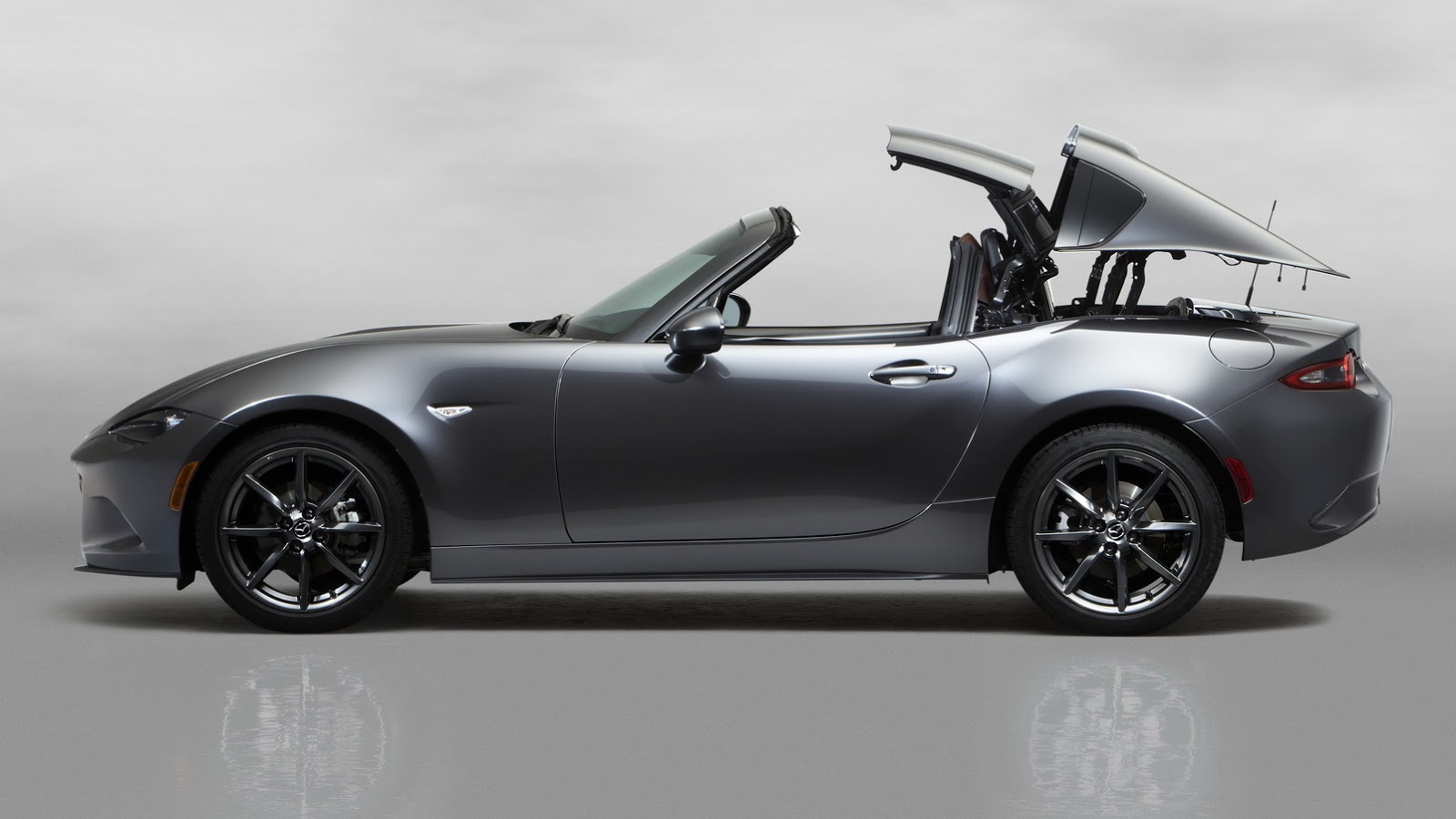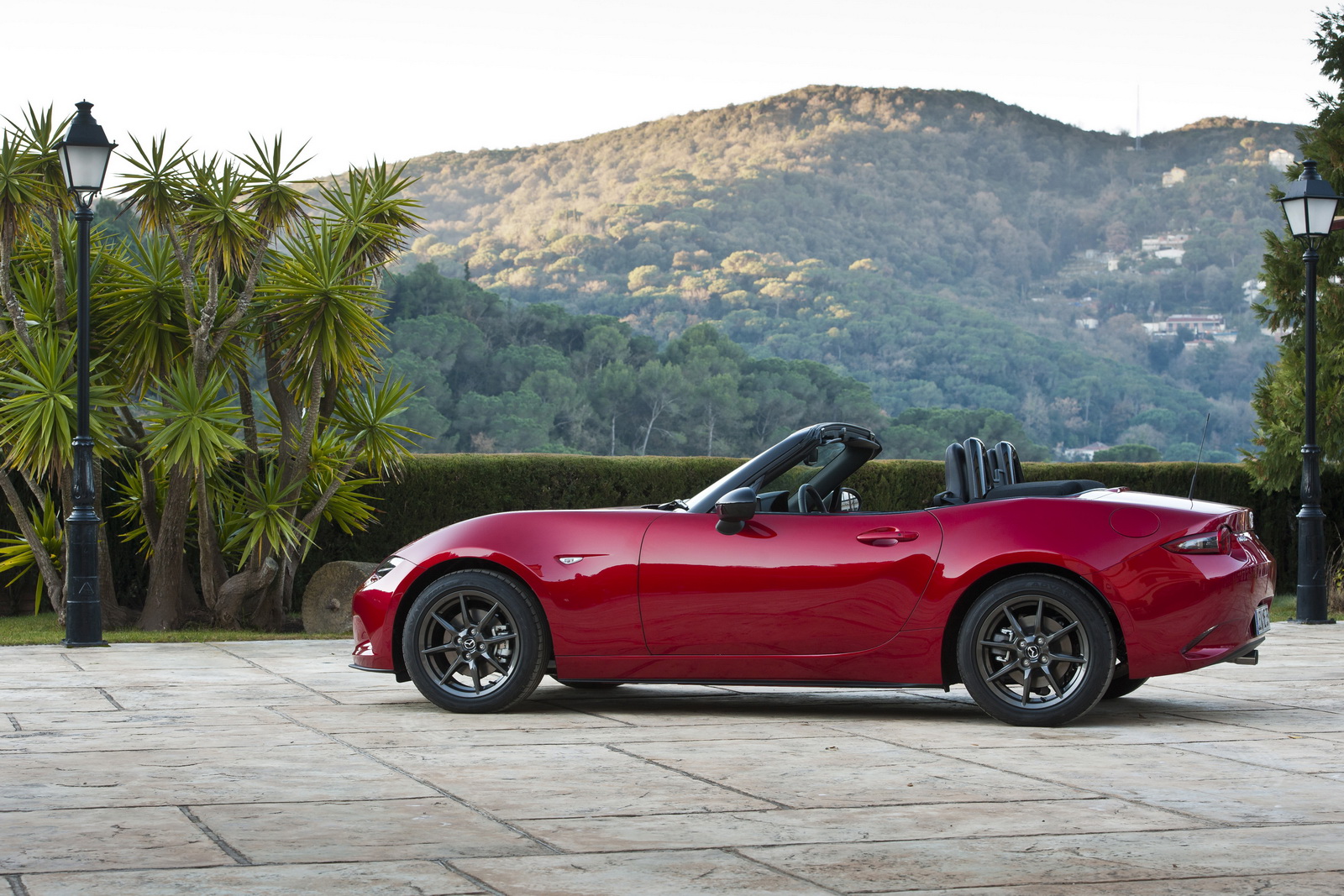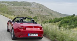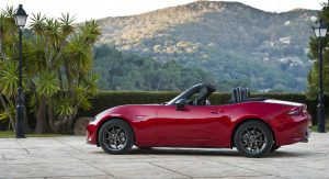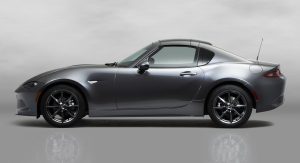 The current Mazda MX-5 debuted in September 2014, with a 150 mm (6 in) shorter, 20 mm (0.8 in) lower and 10 mm (0.4 in) wider body than its predecessor, riding on a 15 mm (0.6 in) shorter wheelbase. Last month, Mazda introduced a second body style, the “targa” MX-5 RF (Retractable Fastback). The MX-5 Miata starts from $24,915 in the United States, while in Germany, customers can order it from €22,990 ($25,790).