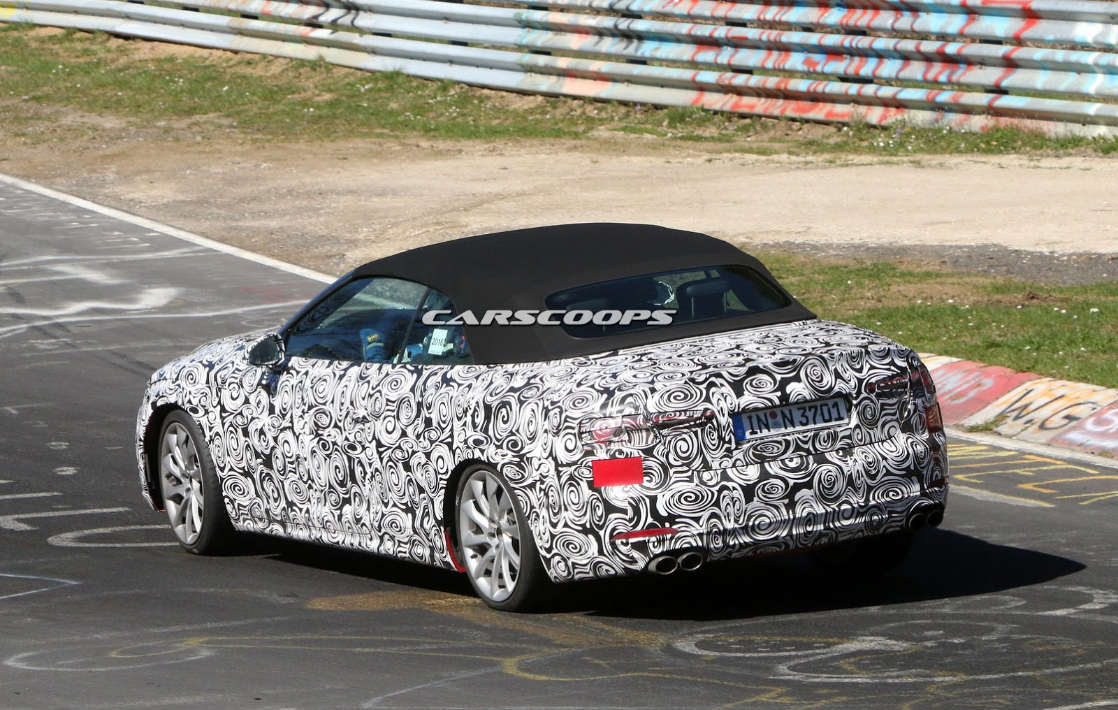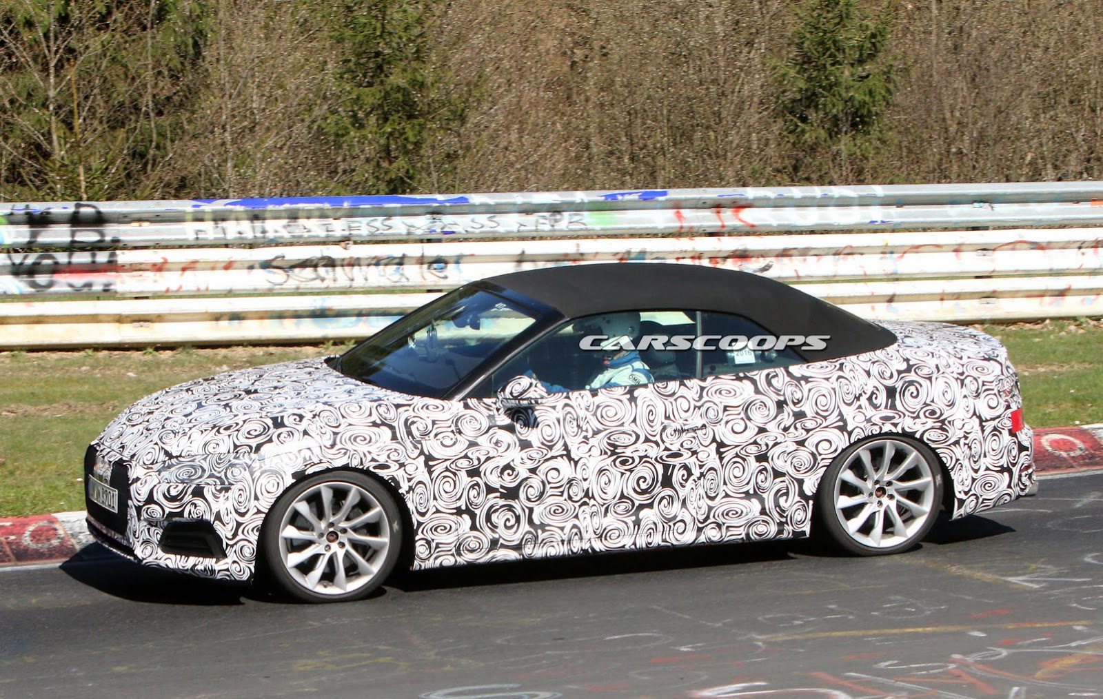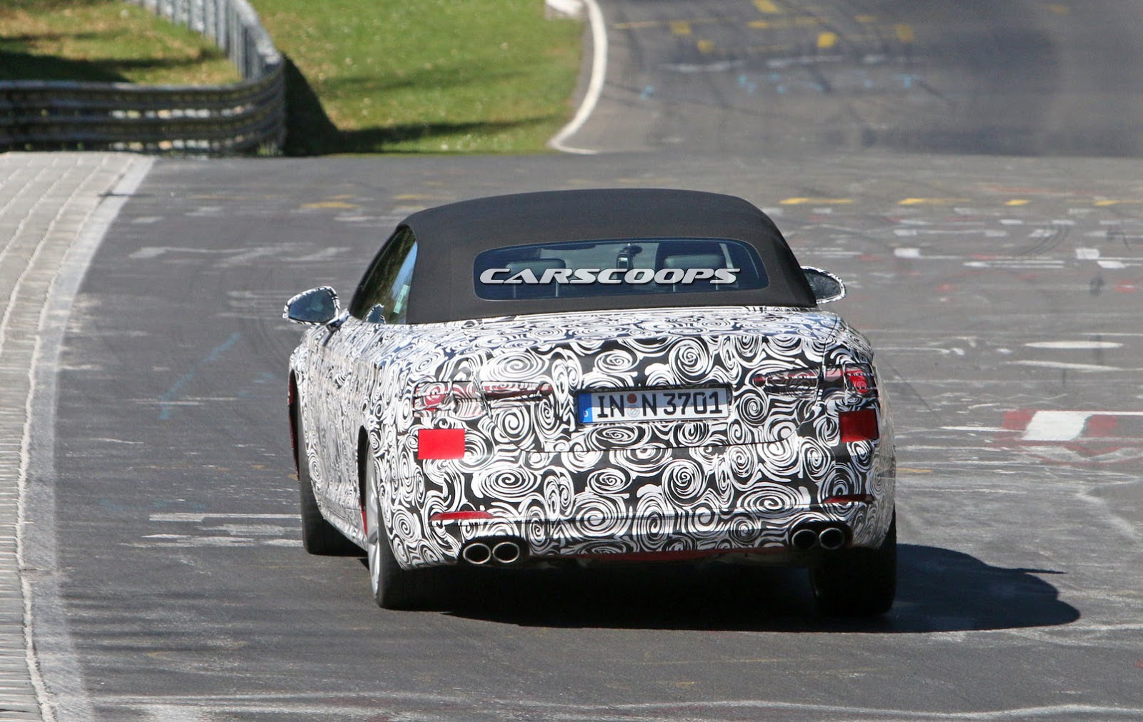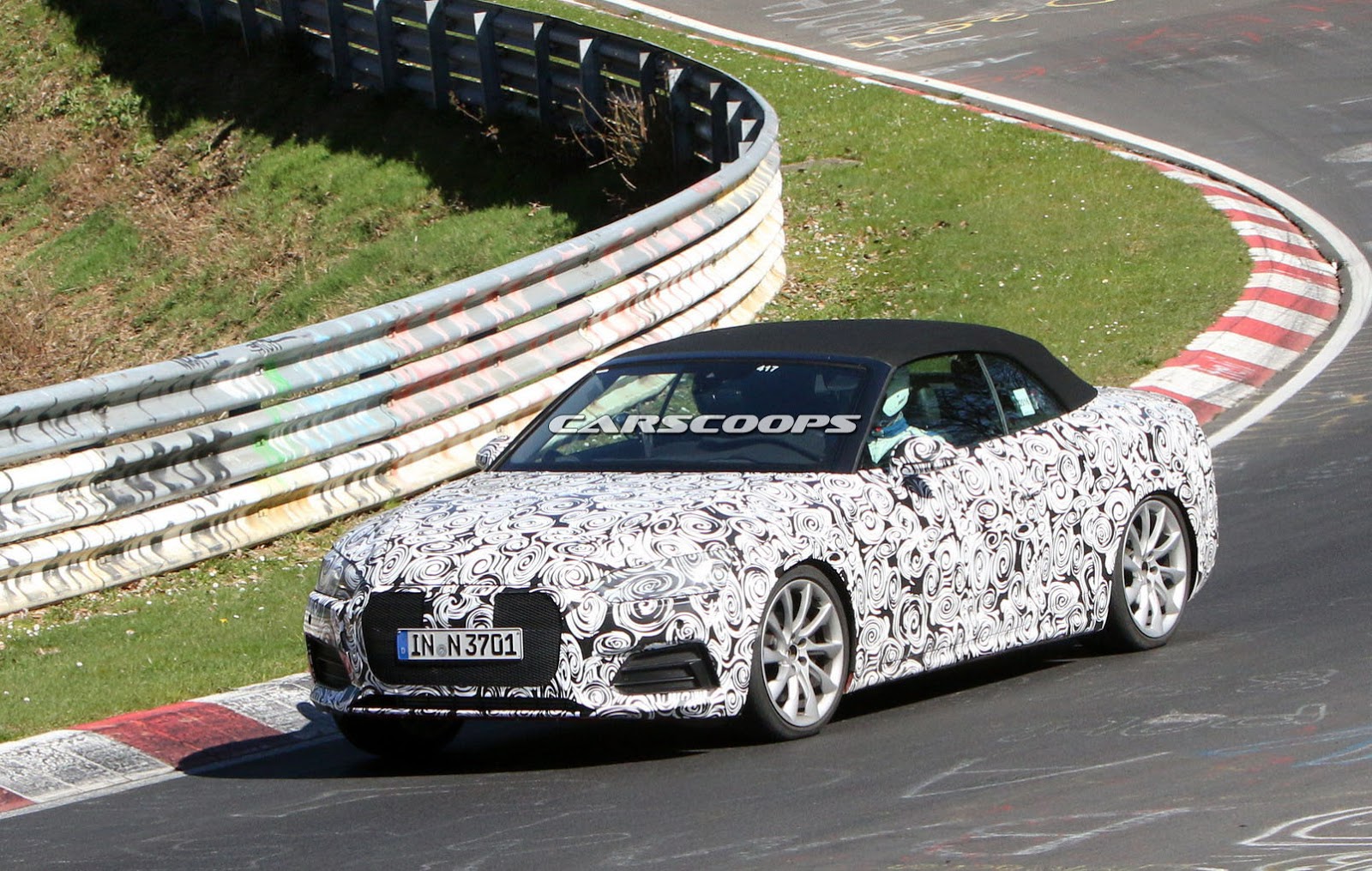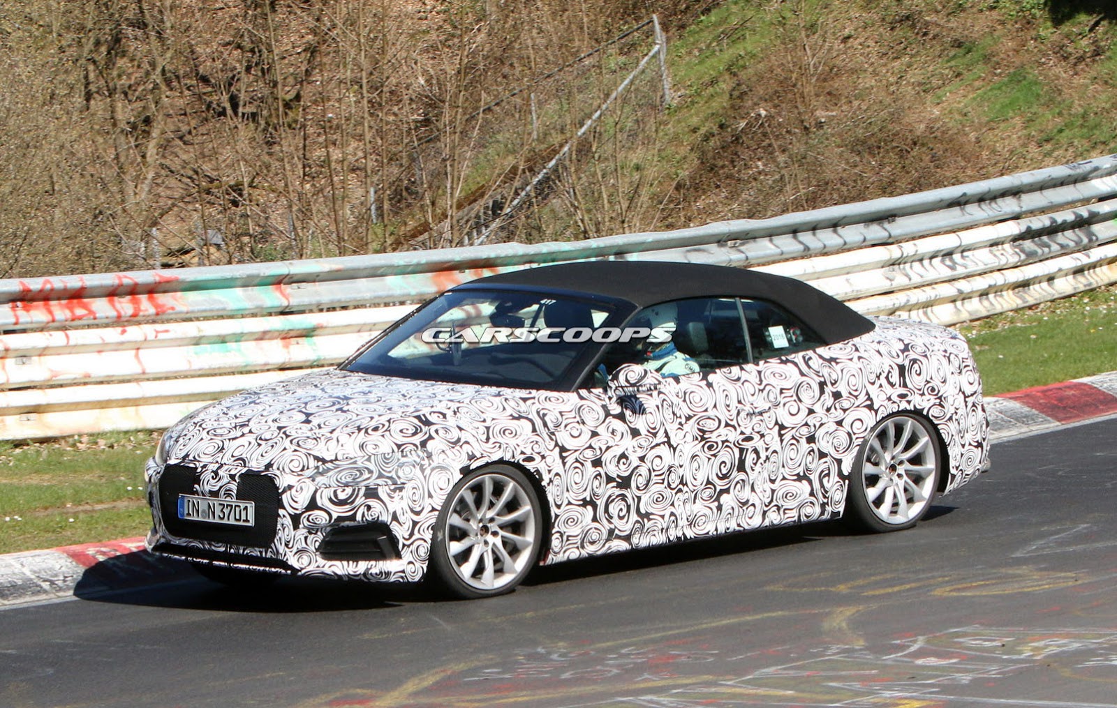 This is the new Audi S5 Convertible, which has been spotted undergoing development testing on the Nürburgring track in Germany, ahead of a market launch next year.