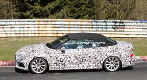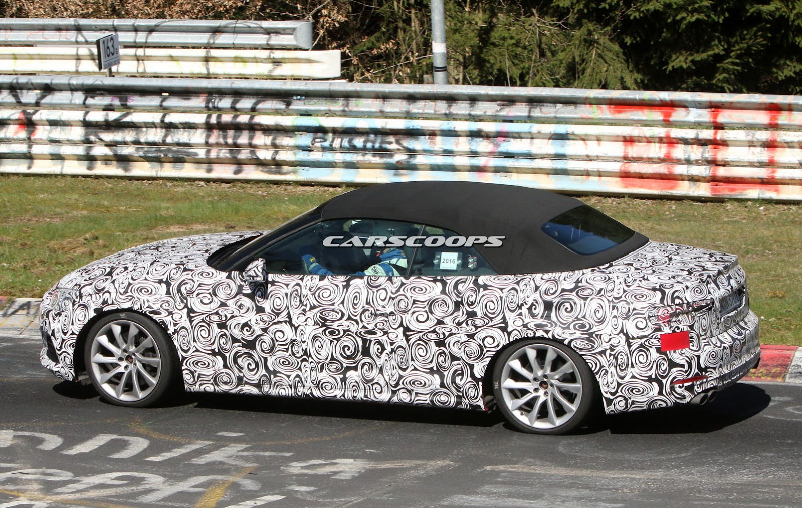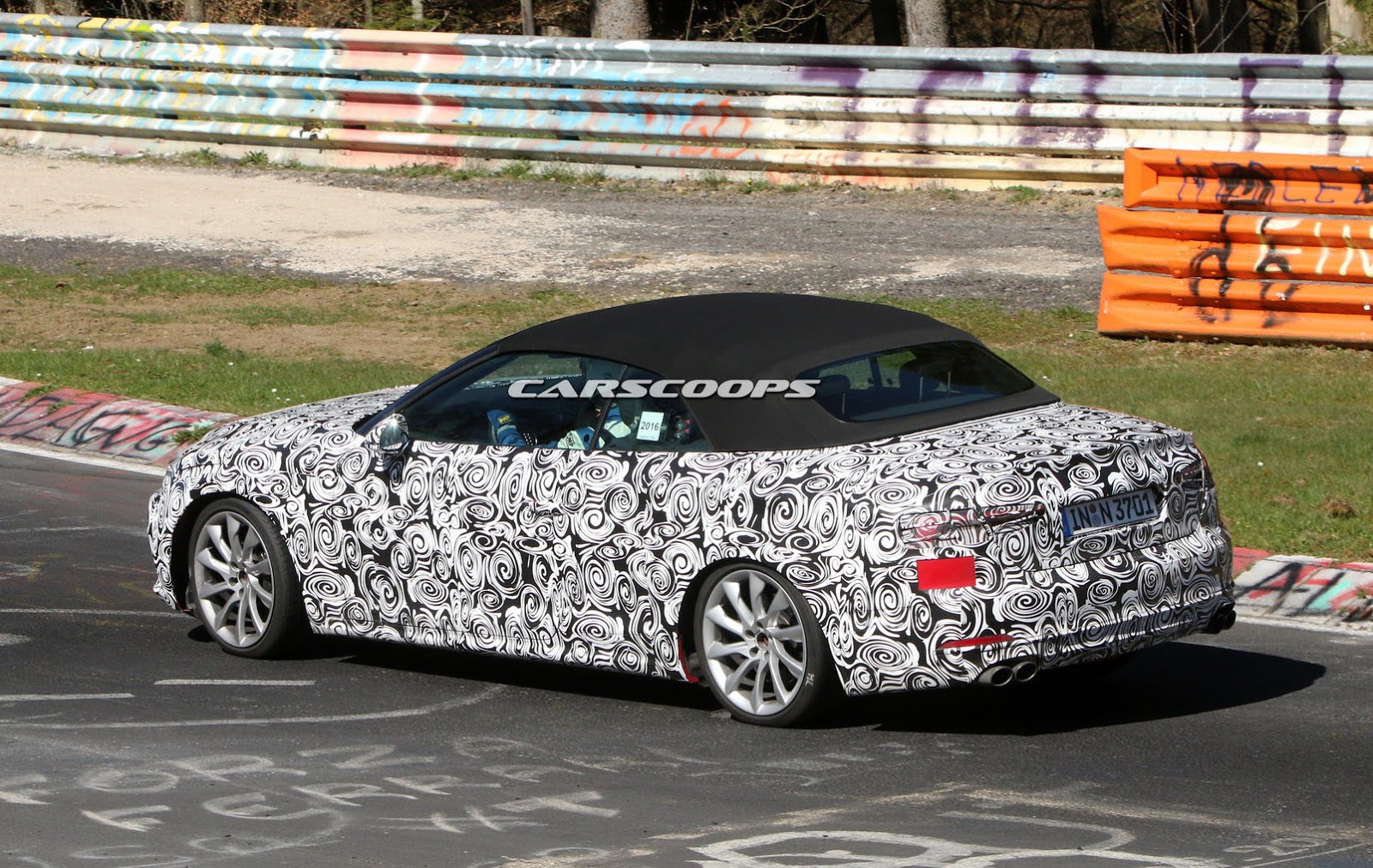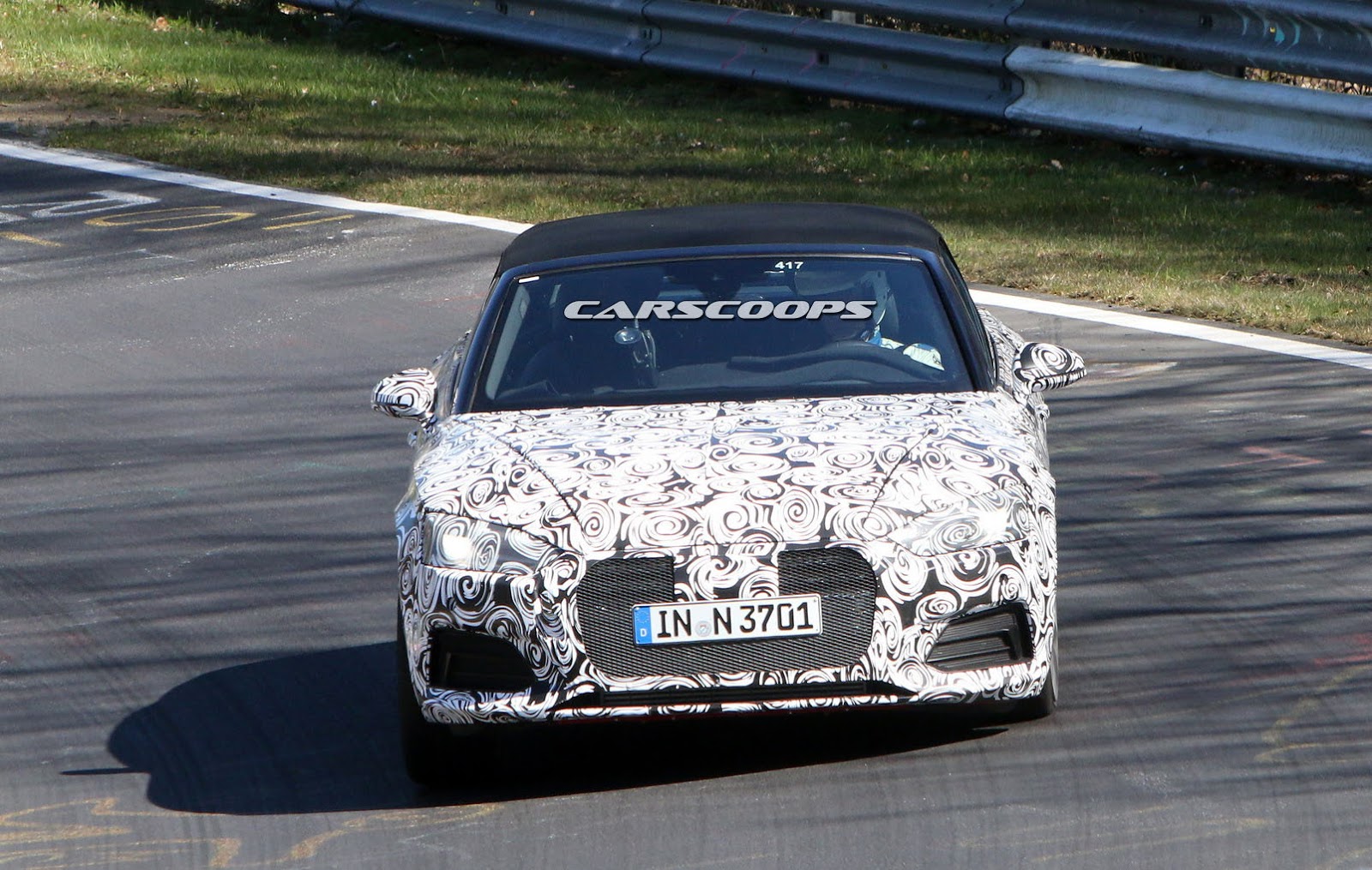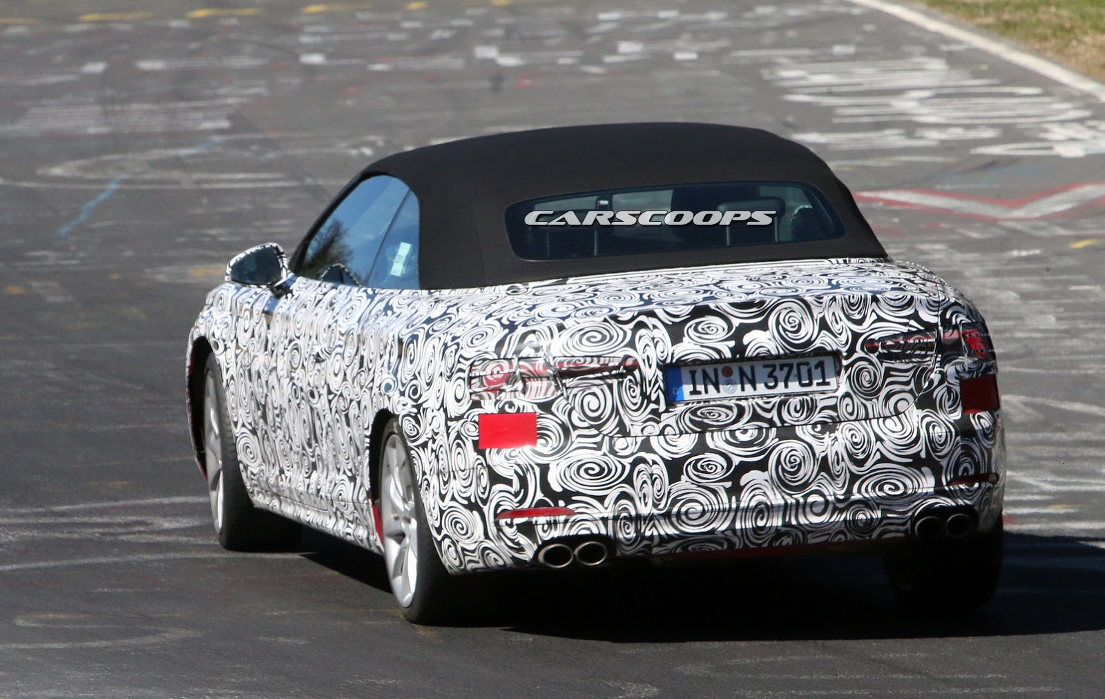 This is the new Audi S5 Convertible, which has been spotted undergoing development testing on the Nürburgring track in Germany, ahead of a market launch next year.