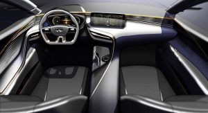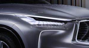 While the restrained exterior design doesn’t seem too far away from production, the interior is more exaggerated with the goal here being to give us a general idea of the lines and shapes of Infiniti’s future SUVs. The Japanese company says the cabin “follows Infiniti’s driver-centric, passenger-minded approach to advanced cabin architecture”. A couple of things we’d hold on to would be the digitalized instrument panel and the standalone touchscreen for the infotainment system.