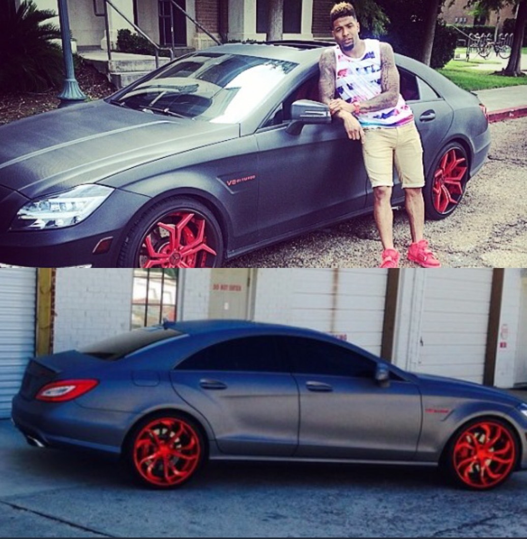 Aside from his Rolls-Royce Drophead Coupe, Odell also likes to drive around in this, a non-facelifted Mercedes-Benz CLS 63 AMG wearing matte gray and candy-red wheels.
