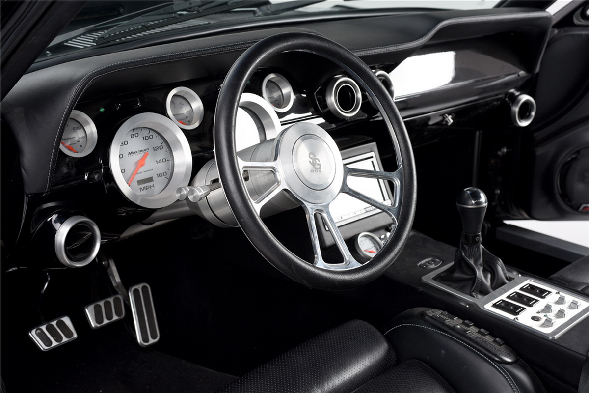 To be fair there isn’t a single surface, nut or bolt left untouched on it but then again, $1.3 million is a lot of money for a Mustang. The bodywork is extensively modified with the highlights to include a pair of headlights from a 2005 Mustang, brake cooling intakes, custom side skirts, wider rear fenders and a rear diffuser among others.