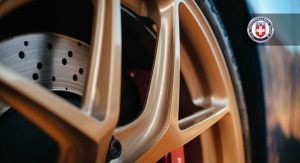 This particular model posed while wearing a set of Gloss Gold HRE R101 wheels, similar in design with the ones we saw on this classic 1962 custom Corvette.