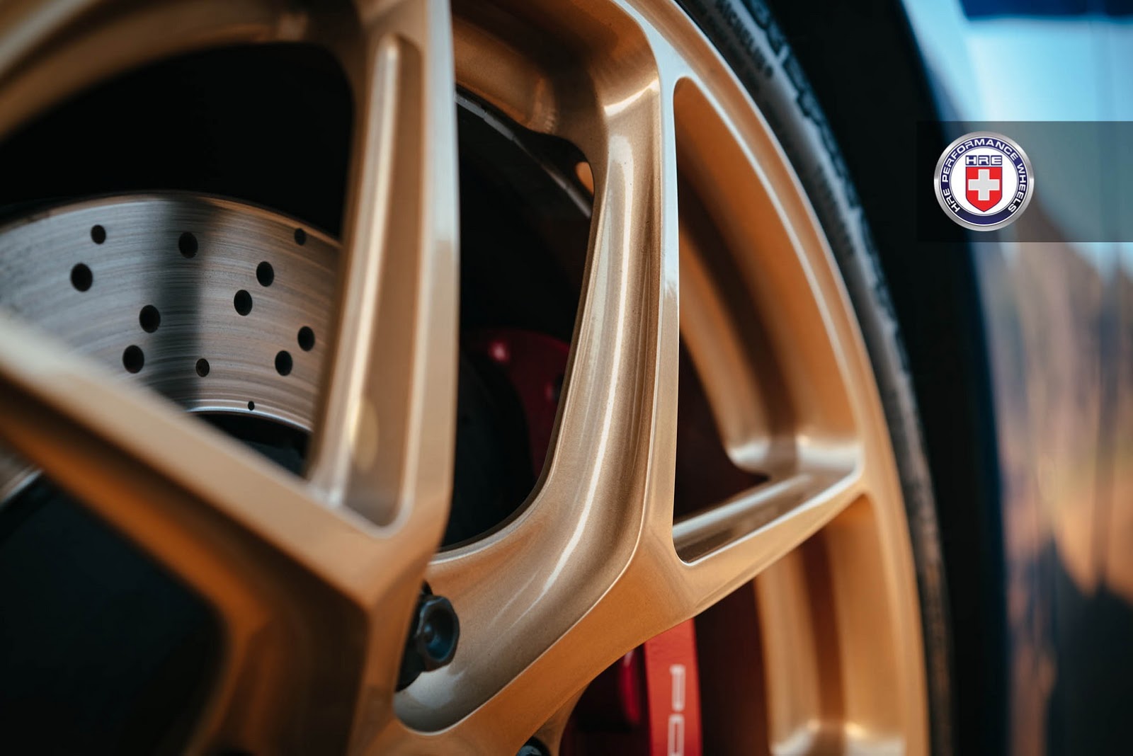 This particular model posed while wearing a set of Gloss Gold HRE R101 wheels, similar in design with the ones we saw on this classic 1962 custom Corvette.