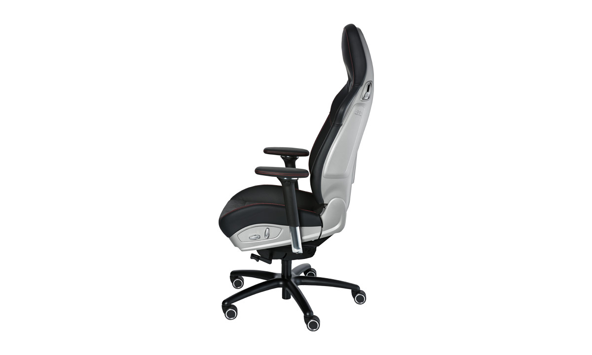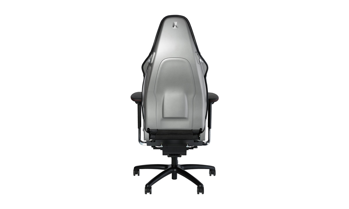 The seat features a rechargeable battery-powered backrest adjuster, as well as “3-D adjustable” armrests. It even has a jacket-hook on the rear and Porsche’s crest embedded on the “headrest”, but its 35 kg (77 lbs) lightweight construction and five castors – “for optimal traction” through the…workroom – are the chair’s strengths.