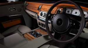 The same theme is carried over into the interior as well, creating an “inviting sanctuary of stylish luxury” – according to Rolls Royce itself. The Smoke Grey leather backdrops the Mandarin seat piping, the headrest embroidery, and the woodgrain, while the elephant motif can be found throughout the cabin.