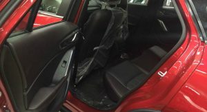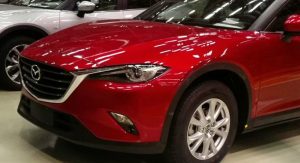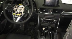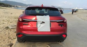 Inside, the crossover has a dashboard that mirrors the one from the Mazda3, with a floating center display controllable through the rotary knob fitted behind the gearshift lever, identical dials that sit behind a multi-function steering wheel and what seems to be an electronic parking brake.