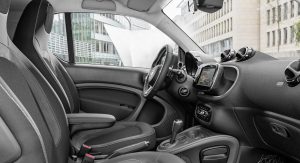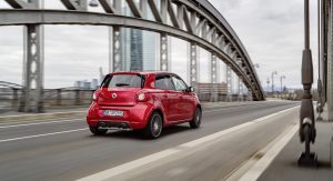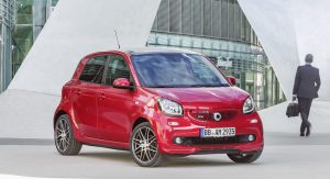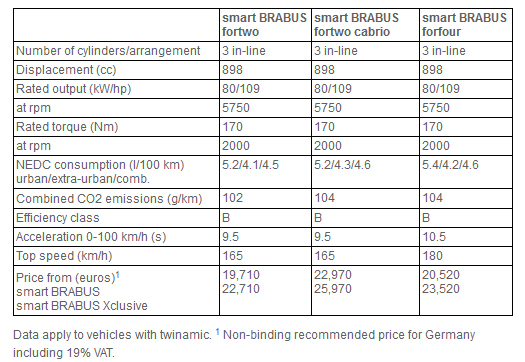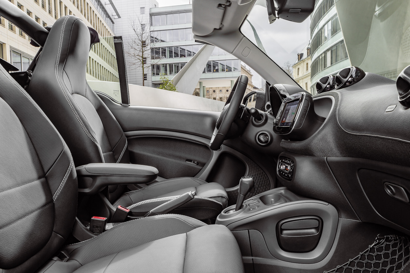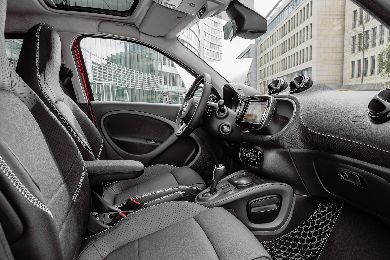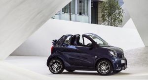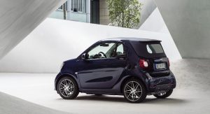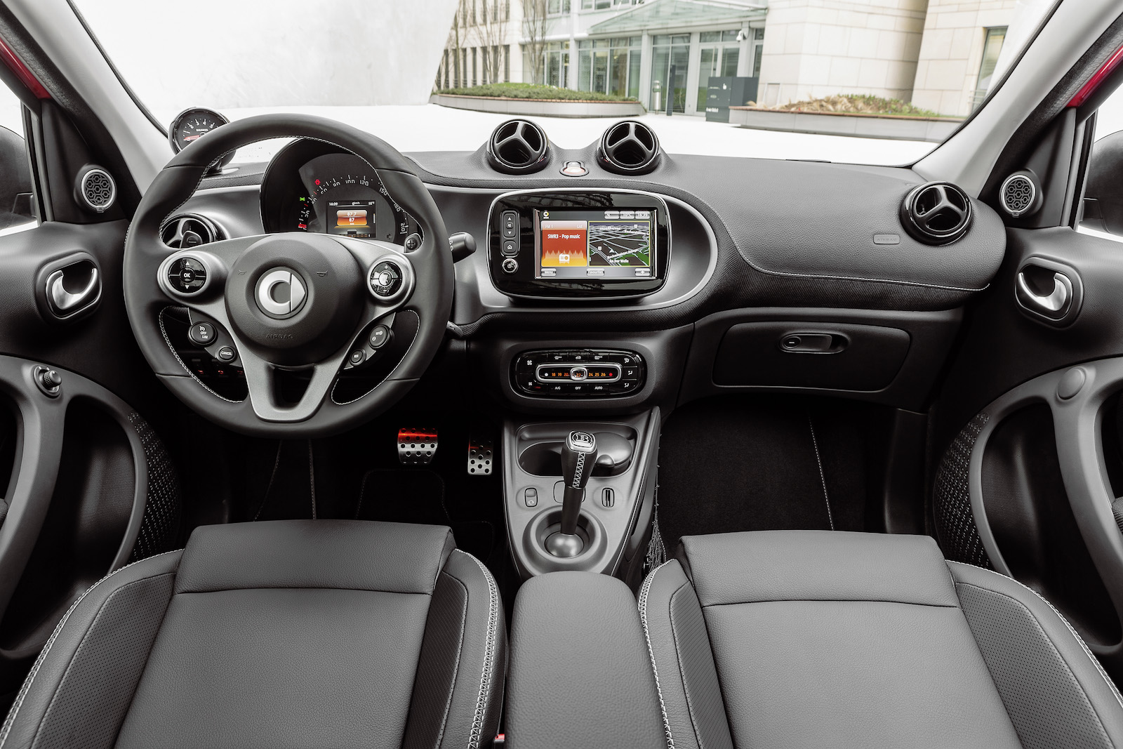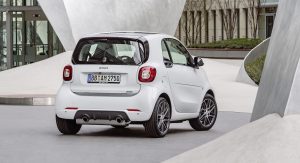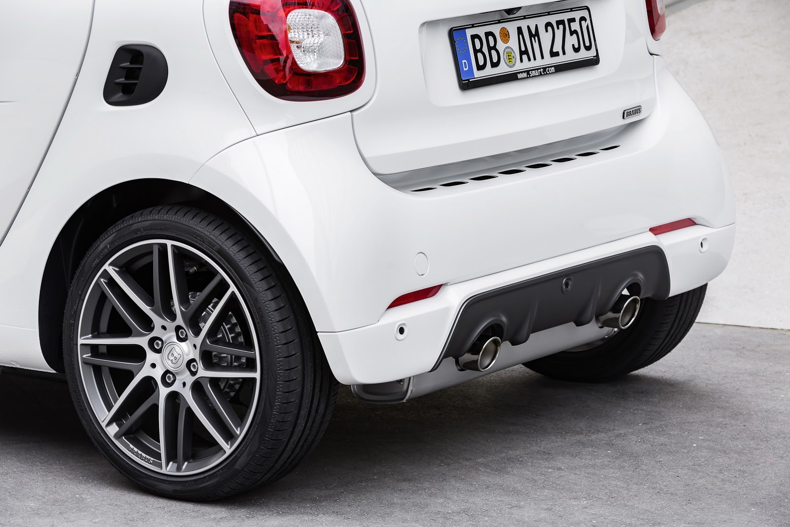 The power this time comes from an 898-cc engine with 107hp (109PS) and 170 Nm of torque, modest improvements over the old car but gains of around 20 percent over the standard 0.9-liter turbo car. Smart says the Brabus ForTwo can get up to 100 km/h in 9.5 seconds and up to at least 180 km/h top speed.