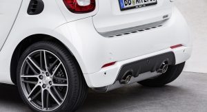 But to further cement the Smart Brabus’ sporting credentials, there is a snarlier exhaust note, a more aggressive steering setup and a revised six-speed dual-clutch transmission the incorporates a “Race Start” system for, “optimal rpm and clutch slip for maximum acceleration from rest.” Yeah, this Smart has launch control.