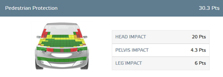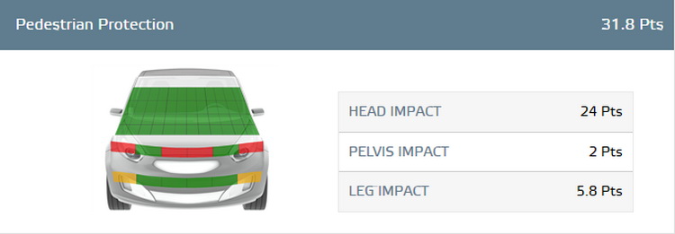 The Pedestrian Protection rating is determined by testing front-end structures such as the hood (plus the edge), the windshield and the bumper. A team of experts then evaluates the potential risk at injuries to a pedestrian’s head, pelvis, upper and lower leg. Of course, if the car comes with some type of an autonomous emergency braking system, it will receive additional points.