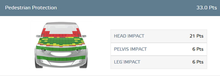 Yet another roadster, with an overall Pedestrian Protection score of 91% with head, pelvis and leg impact points very similar to those scored by the MX-5.