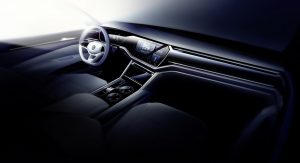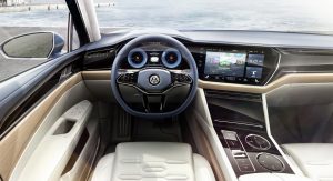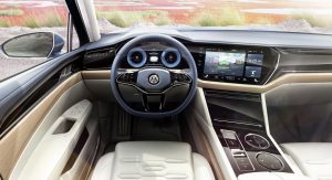 The T-Prime Concept GTE is based on the VW Group’s modular longitudinal platform (MLB) for full-size models with longitudinally mounted engines and gearboxes. It’s a big vehicle at 199.6 inches / 5,070mm long, making it 0.4 inches / 10mm longer than the first-gen Phaeton and 6.7 inches / 171mm longer than the current Touareg. In concept form, it has two individual rear seats and measures 78.7 inches / 1,999mm wide and 67.2 inches /1,707mm tall.