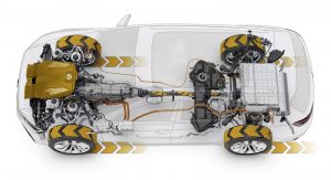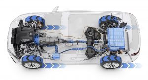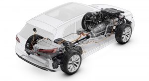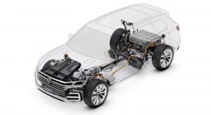 To appease the eco-friendly crowd, VW has stuffed a 375 horsepower and 699Nm (516 lb-ft) plug-in hybrid drive, incorporating a 134hp and 258 lb-ft (349Nm) electric motor housed in the transmission, a 248hp and 273 lb-ft (370Nm) 2.0-liter turbocharged gas engine, and battery, which can charge externally or during the drive. It’s also equipped with VW’s MOTION permanent all-wheel drive that allocates power to the front and rear wheels via the limited-slip differential, which is also integrated into the 8-speed automatic gearbox.