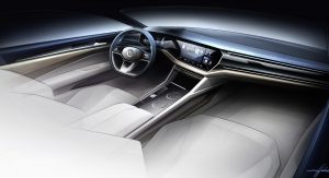 Inside, the Germans removed most of the conventional switchgear, as with the exception of the steering wheel stalks, all controls are executed as touch-sensitive surfaces with white backlighting or in the case of gearbox control, have been engineered to be completely new “by-wire solution”, as VW states. The automaker also tells us to pay attention to the huge digital display spanning the area in front of the driver and the center console like an arc, as it “symbolizes the cockpit of the future” that “will begin at Volkswagen as early as 2017”.