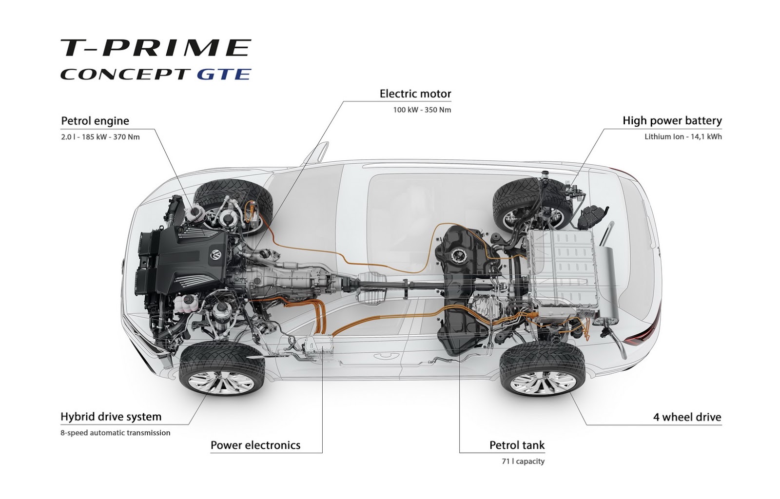 The T-Prime Concept GTE offers three different driving modes, the pure-electric E-Mode, Hybrid, and GTE, with the latter providing the most power from the electric motor and the TSI engine, allowing for a 0-60mph (96km/h) acceleration in 6.0 seconds and a top speed of 139mph (224km/h).