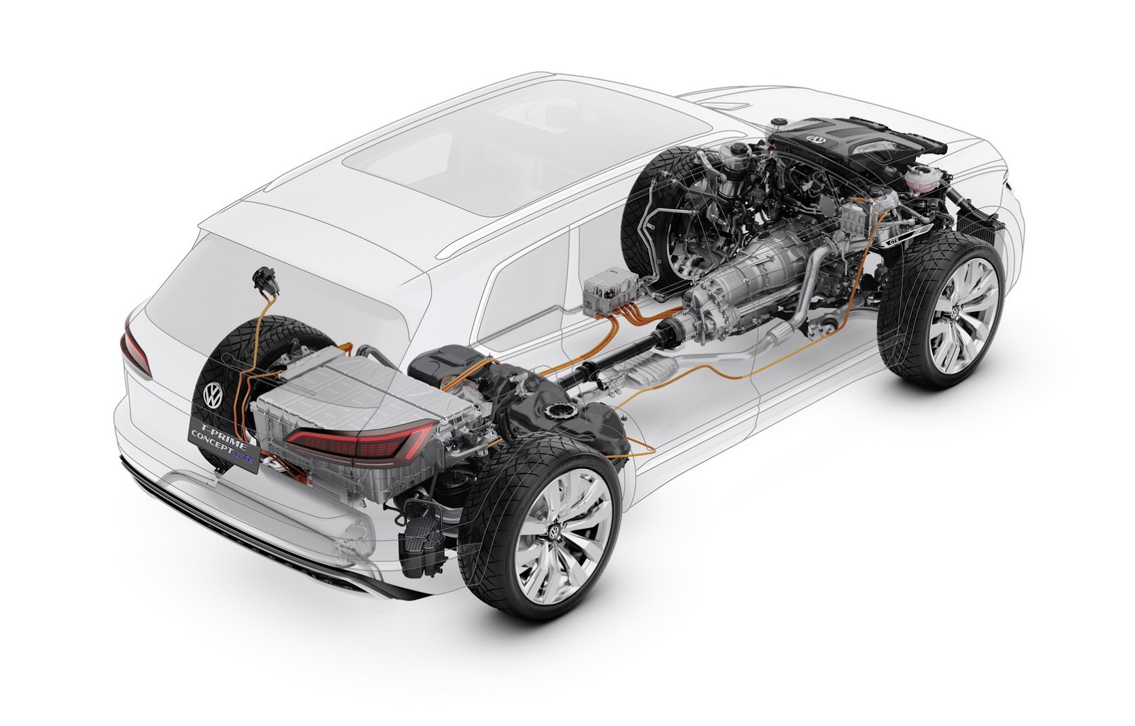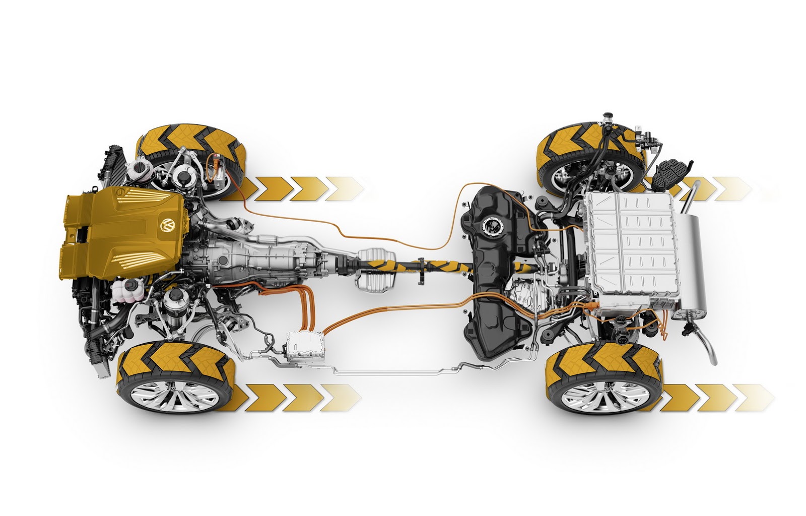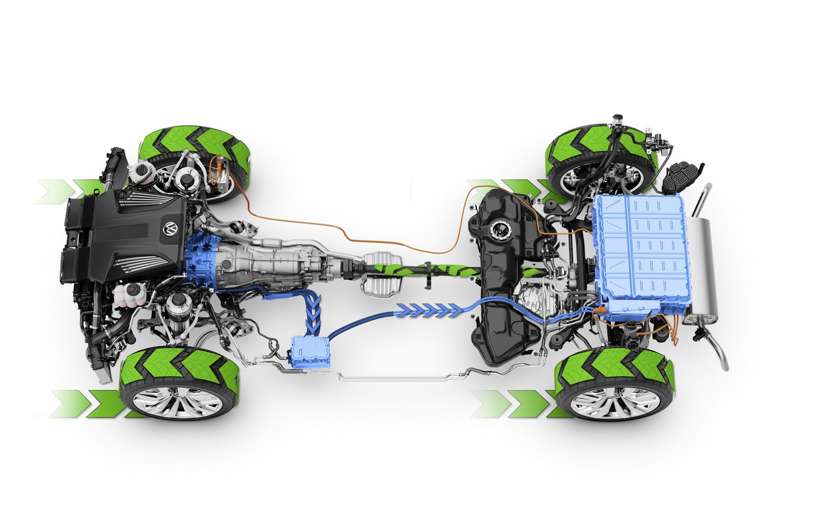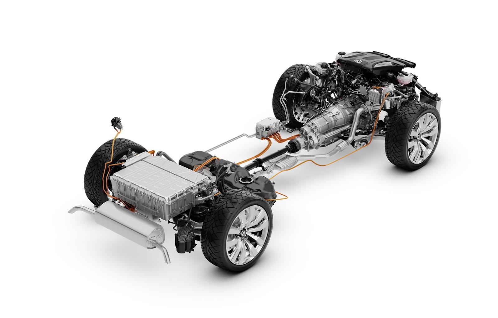 To appease the eco-friendly crowd, VW has stuffed a 375 horsepower and 699Nm (516 lb-ft) plug-in hybrid drive, incorporating a 134hp and 258 lb-ft (349Nm) electric motor housed in the transmission, a 248hp and 273 lb-ft (370Nm) 2.0-liter turbocharged gas engine, and battery, which can charge externally or during the drive. It’s also equipped with VW’s MOTION permanent all-wheel drive that allocates power to the front and rear wheels via the limited-slip differential, which is also integrated into the 8-speed automatic gearbox.