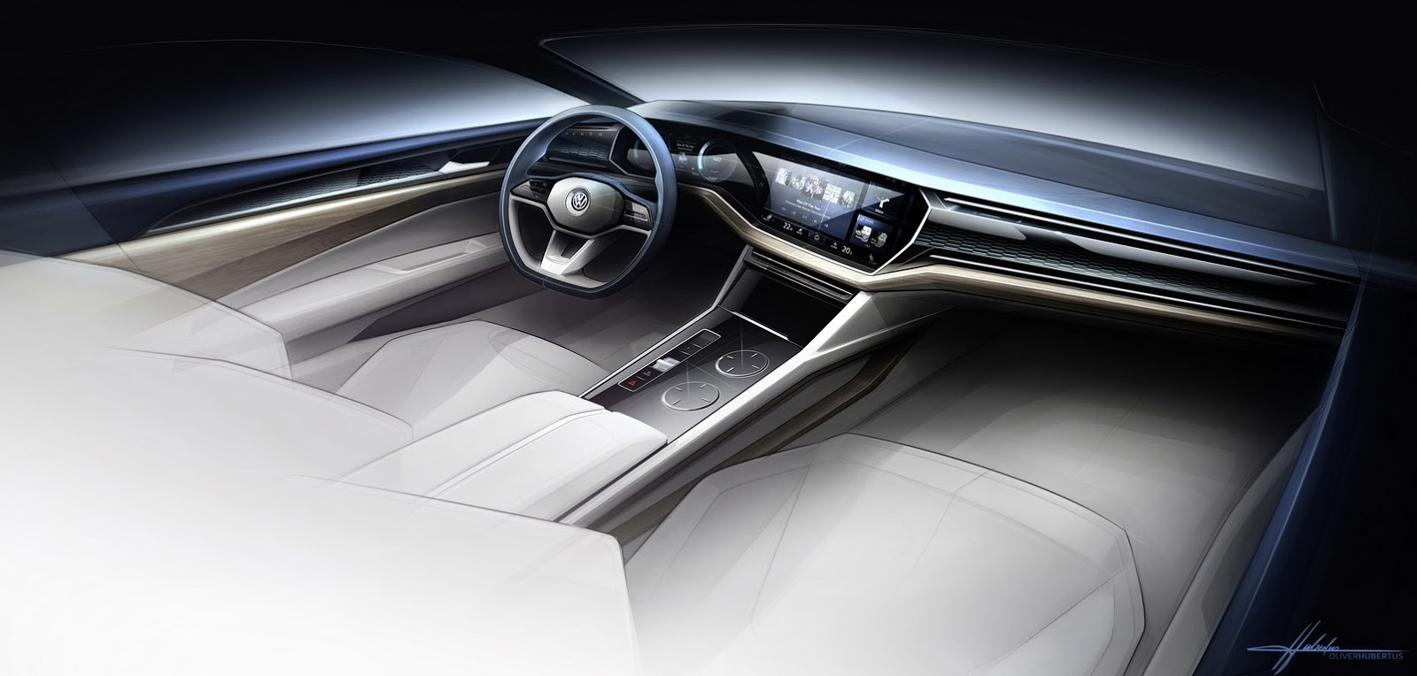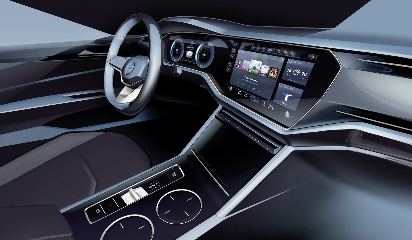 Inside, the Germans removed most of the conventional switchgear, as with the exception of the steering wheel stalks, all controls are executed as touch-sensitive surfaces with white backlighting or in the case of gearbox control, have been engineered to be completely new “by-wire solution”, as VW states. The automaker also tells us to pay attention to the huge digital display spanning the area in front of the driver and the center console like an arc, as it “symbolizes the cockpit of the future” that “will begin at Volkswagen as early as 2017”.