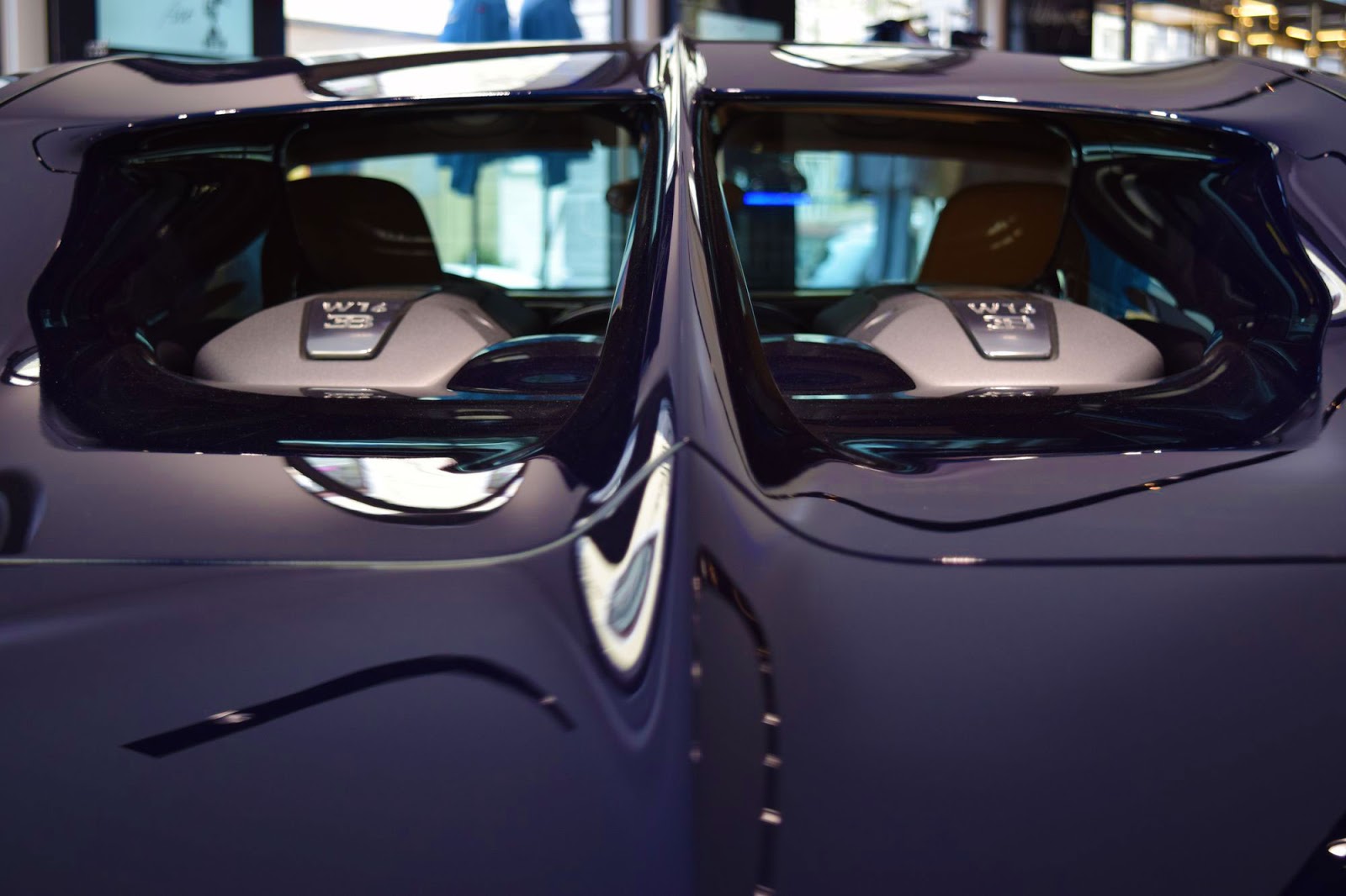 An employee at the boutique confirmed that prospective customers have much preferred this example than the Geneva one and it’s easy to understand why. The more subtle silver and dark blue paint scheme perfectly highlights the new design, drawing your attention to the sharper lines and menacing front fascia. By comparison, the Geneva car was almost too bright, too outlandish and an overload of unnecessary colour. Sometimes simpler really is better.