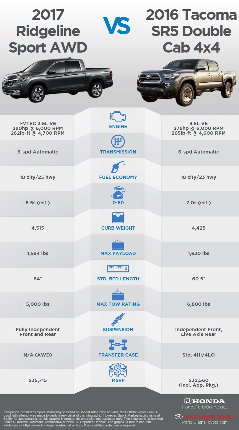 This comparison chart was put together with the help of HondaPartsOnline and PartsOlatheToyota, demonstrating that comparing these two pickups isn’t as easy as it may seem.