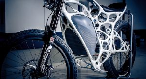 This peculiar looking thing is called the Light Rider, and it’s the world’s first 3D printed motorcycle. With a state-of-the-art 3D frame, APWorks – one of Airbus’ subsidiaries – used bionic algorithms in order to define the organic frame structre using nature’s design principles.