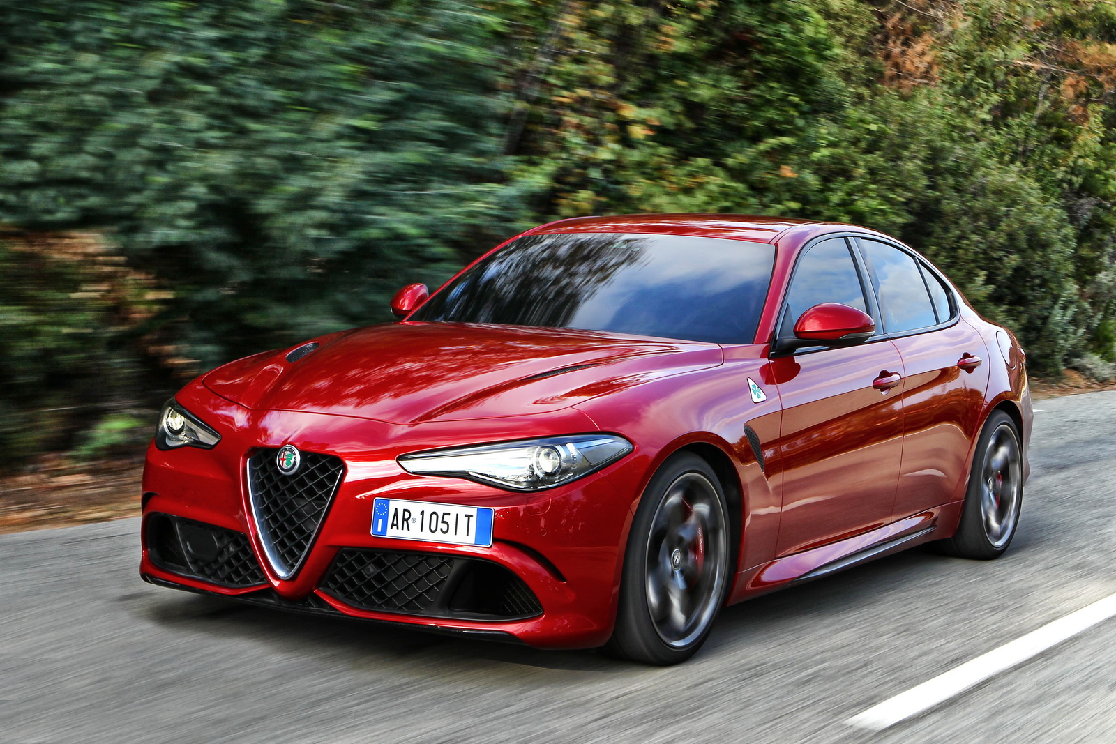 The bodywork features an advanced aero agenda, including an active front splitter made out of carbon, offering a genuine 100kg of downforce at top speed. The drag coefficient of the new Giulia QV is rated at 0.32 Cx.