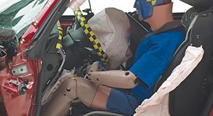 As for Dodge’s older Challenger which is still based on the same platform since the nameplate’s resurrection in 2008, Lund said: “During the crash, the Challenger’s front wheel was forced rearward into the occupant compartment, and the footwell intrusion trapped the dummy’s left foot and deformed its ankle. Our technicians had to unbolt the dummy’s foot from its leg in order to free it. Entrapment is pretty rare. That’s only happened five other times in a small overlap test.”