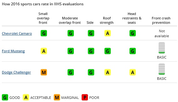 The 2016MY versions of the Ford Mustang, Chevrolet Camaro and Dodge Challenger failed to clinch a Top Safety Pick Plus or even a Top Safety Pick award, with the Challenger being the worst performer. Since all three cars are big sellers in their class, the IIHS engineers decided to evaluate them with optional V8 engines.