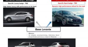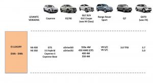 The dealer guide also mentions that Maserati expects the Levante’s core competition to include luxury SUVs priced between $50,000 to $90,000 in the USA, including the Porsche Cayenne, BMW X5 and X6, Mercedes-Benz GLE and GLE Coupe, Land Rover’s Range Rover Sport, Audi Q7 and Infiniti’s QX70.