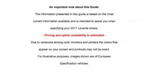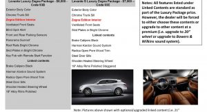 What Maseratilevanteforum member Maserati_Matt offers us today is the preliminary dealer ordering guide that gives us an insight on what the Italian brand plans to charge for various extras, packages and such – though, keep in mind that these are believed to be estimates, not final prices.
